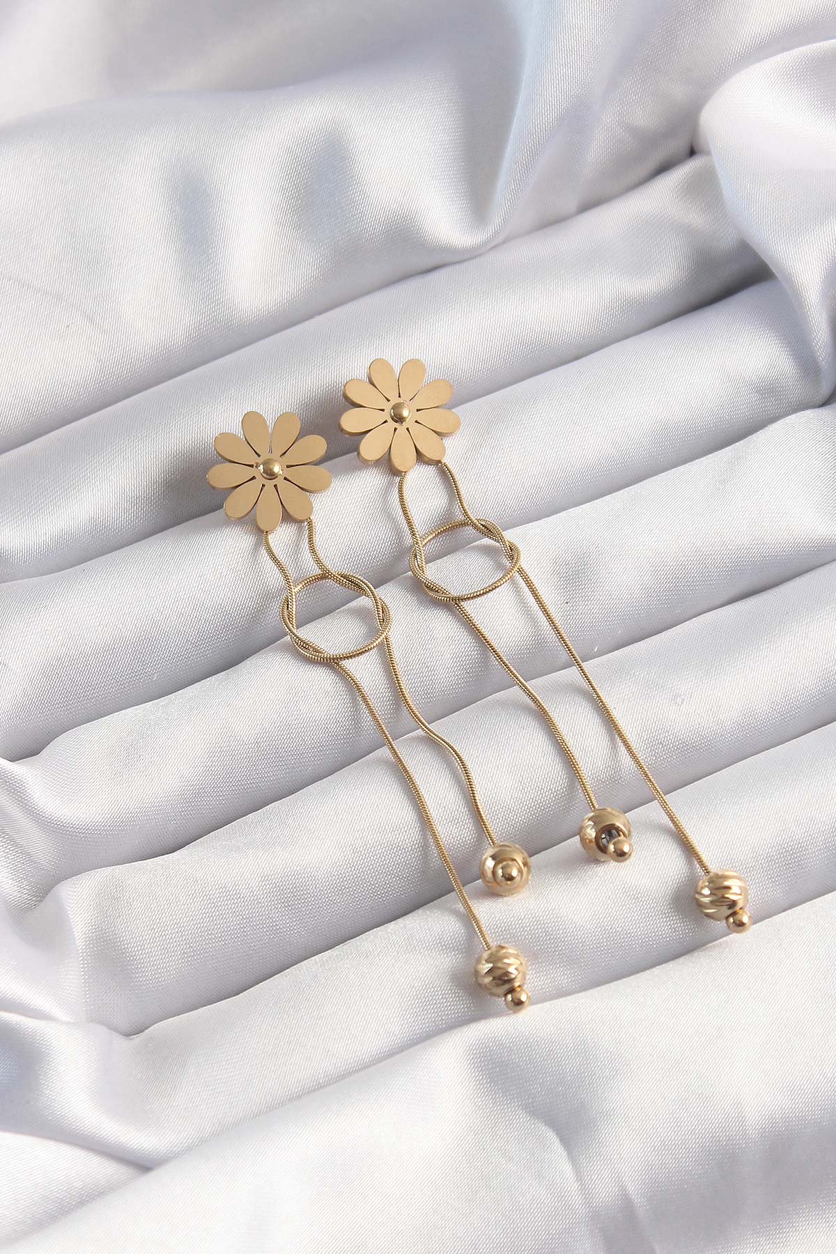 316L Çelik Altın Renk Sallantılı Düğüm Model Papatya Küpe BKP9497