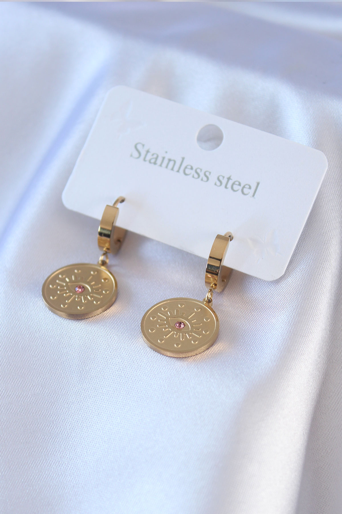 316L Çelik Gold Renk Göz İşleme Zirkon Taş Detay Kadın Küpe BKP7702
