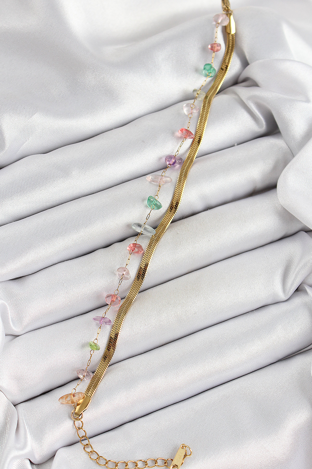 316L Çelik Gold Renk Kristal Karışık Renkli Taşlı Kadın Bileklik BB7091