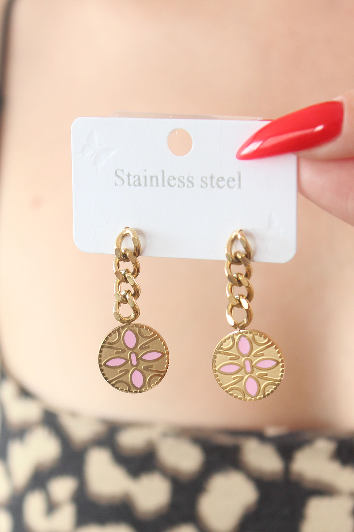 316L Çelik Gold Renk Sallantı Çiçek Model İşleme Detay Kadın Küpe BKP7569