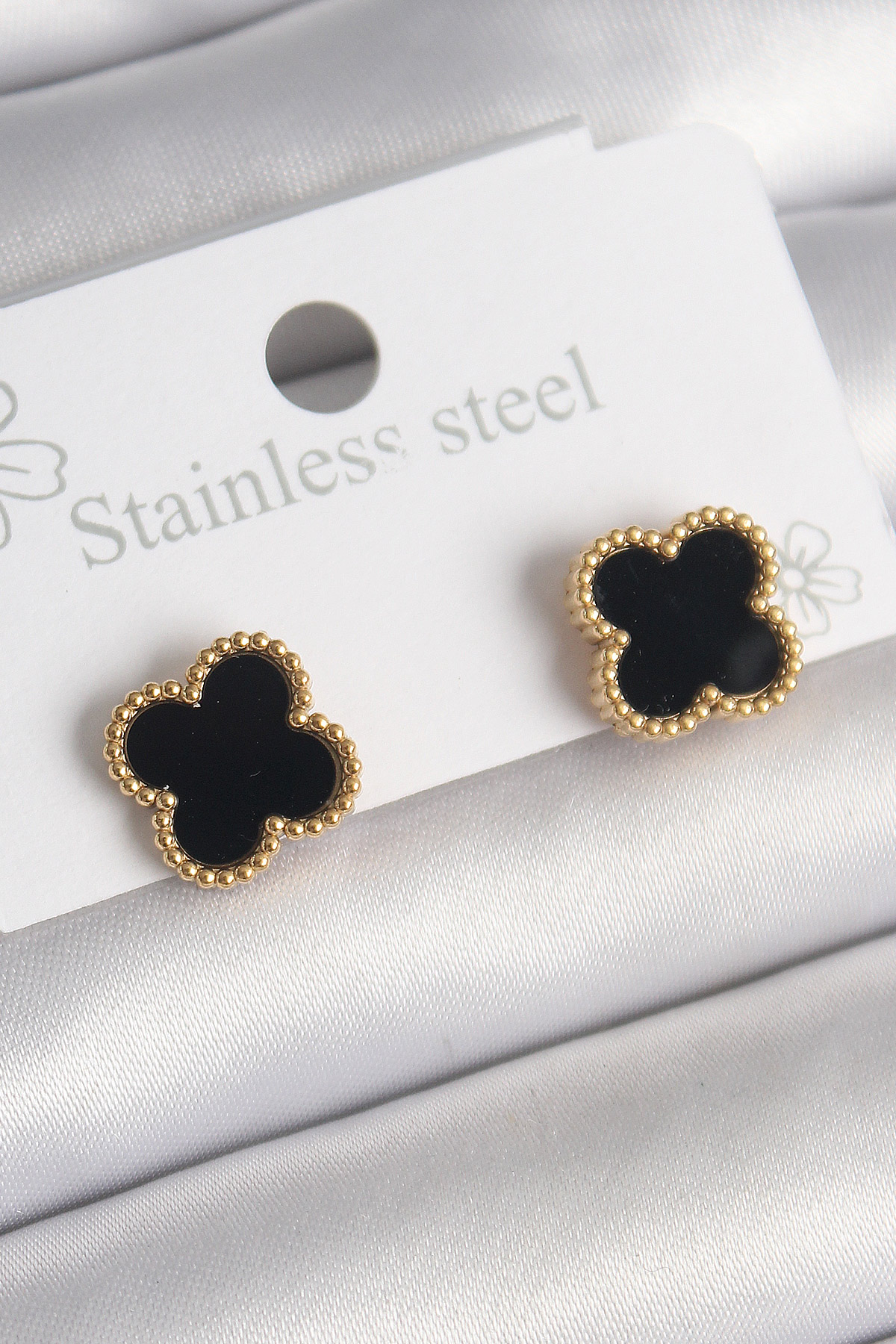 316L Çelik Gold Renk Siyah Yonca Model Kadın Küpe BKP10199