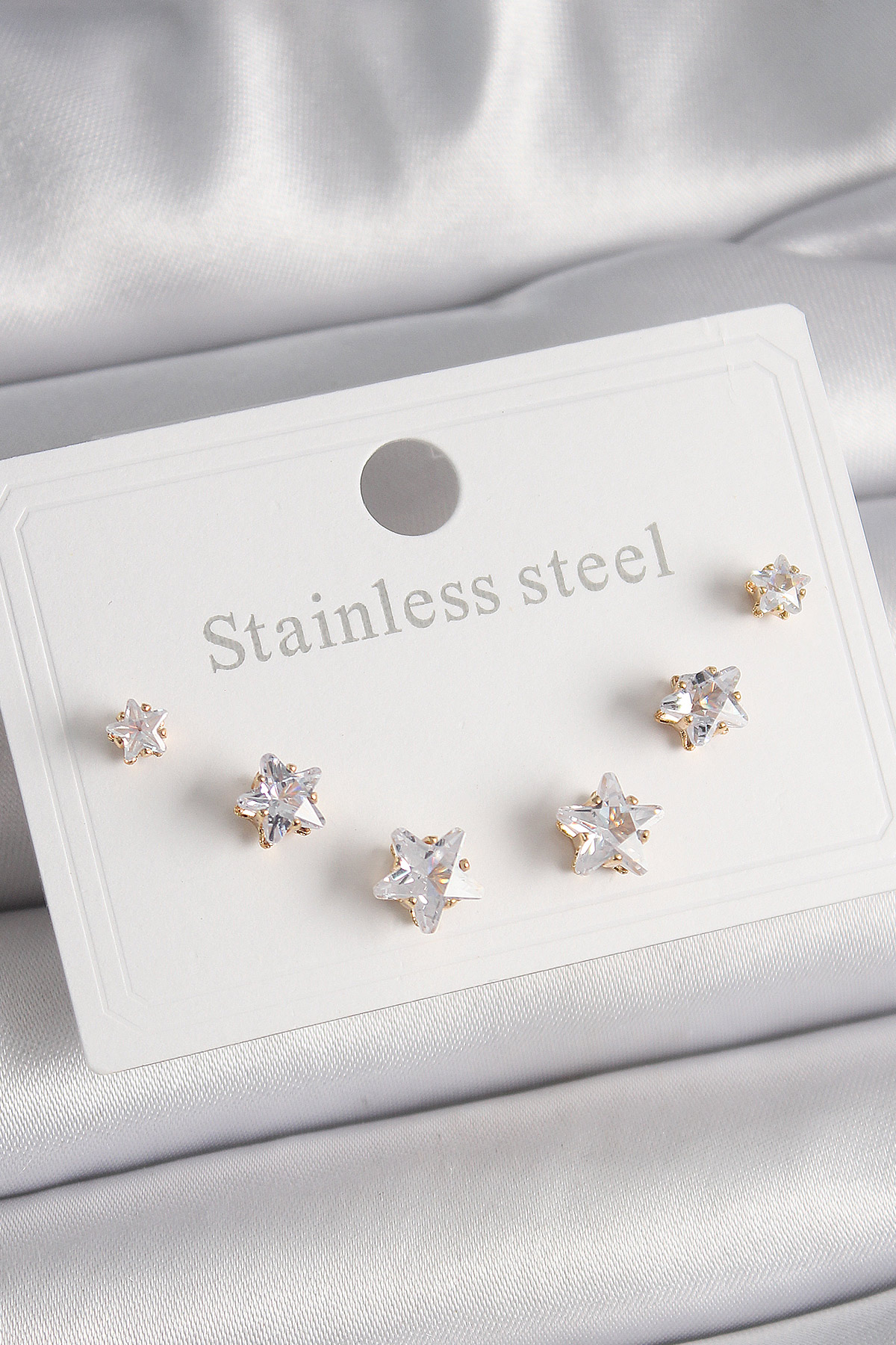 316L Çelik Gold Renk Zirkon Taşlı Yıldız Model Kadın Küpe Seti BKP9882