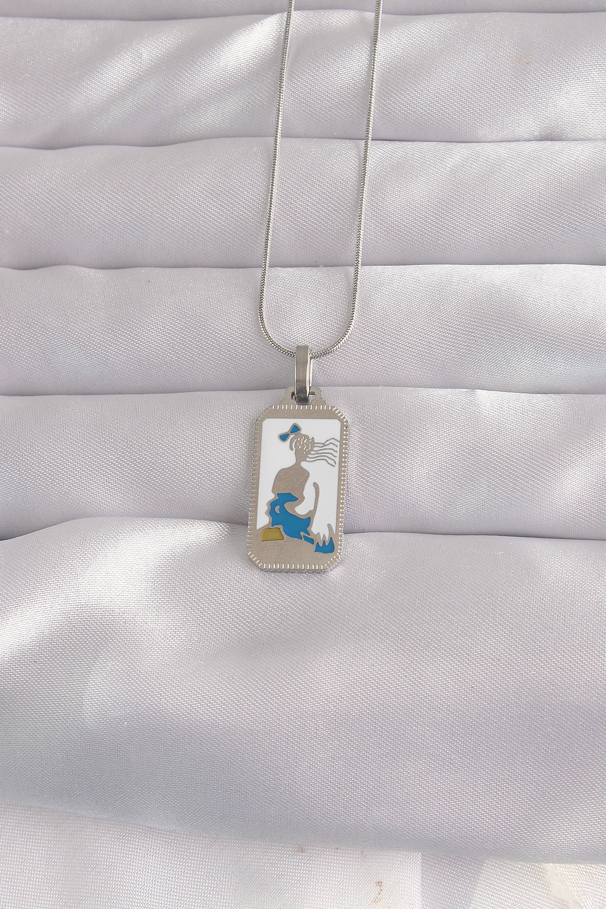 316L Çelik Gümüş Renk Beyaz Mineli Kız Figür Tarot Kolye BKO9049