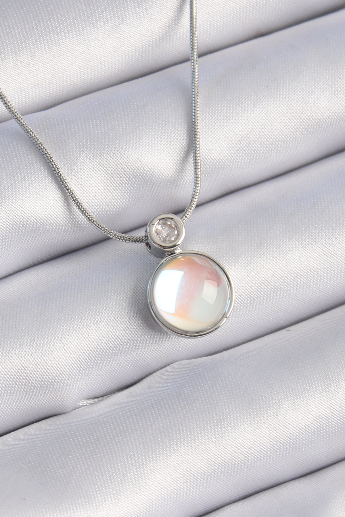 316L Çelik Gümüş Renk Beyaz Sedefli Vintage Model Kadın Kolye BKO9327