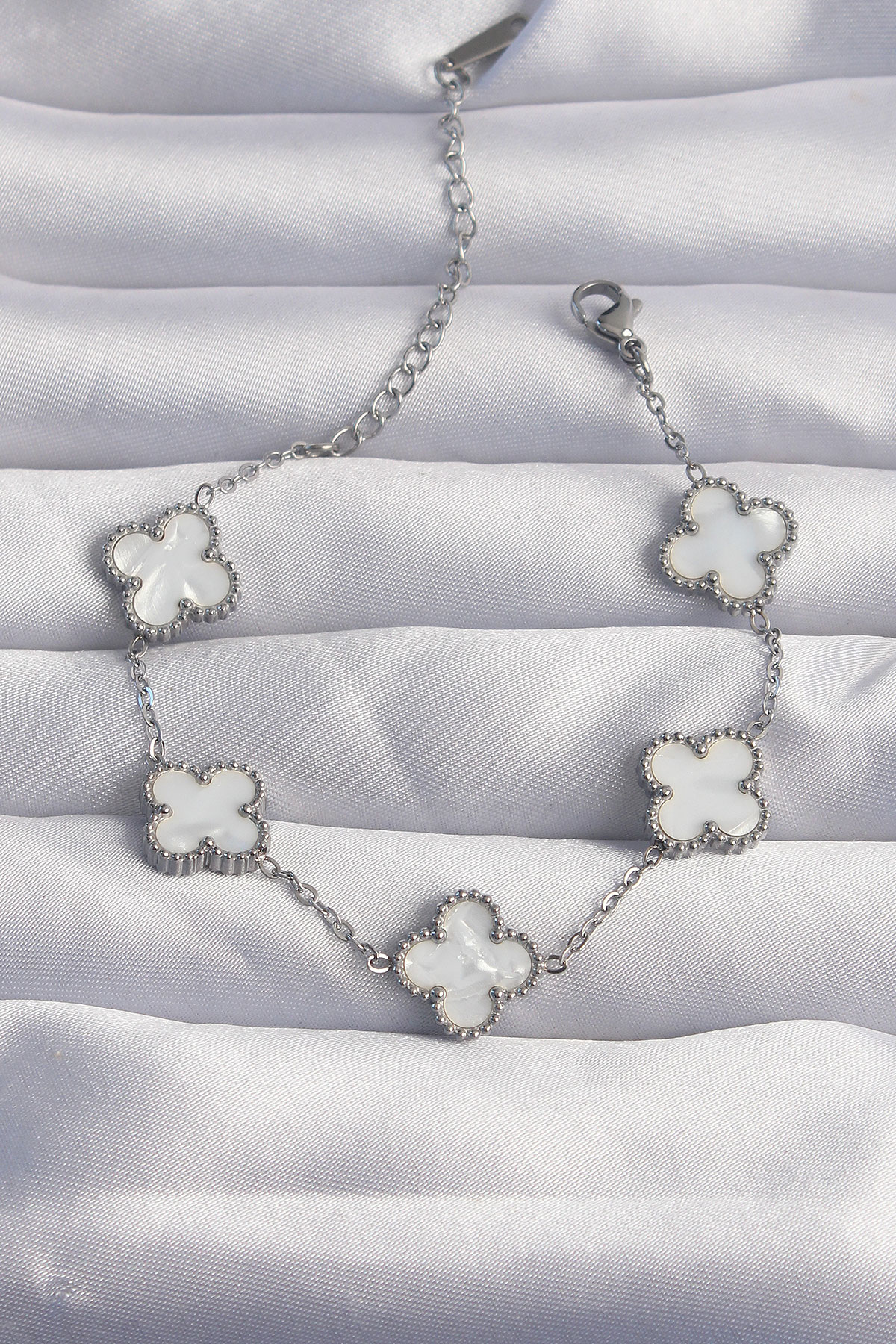 316L Çelik Gümüş Renk Beyaz Sedefli Yonca Bileklik BB6261