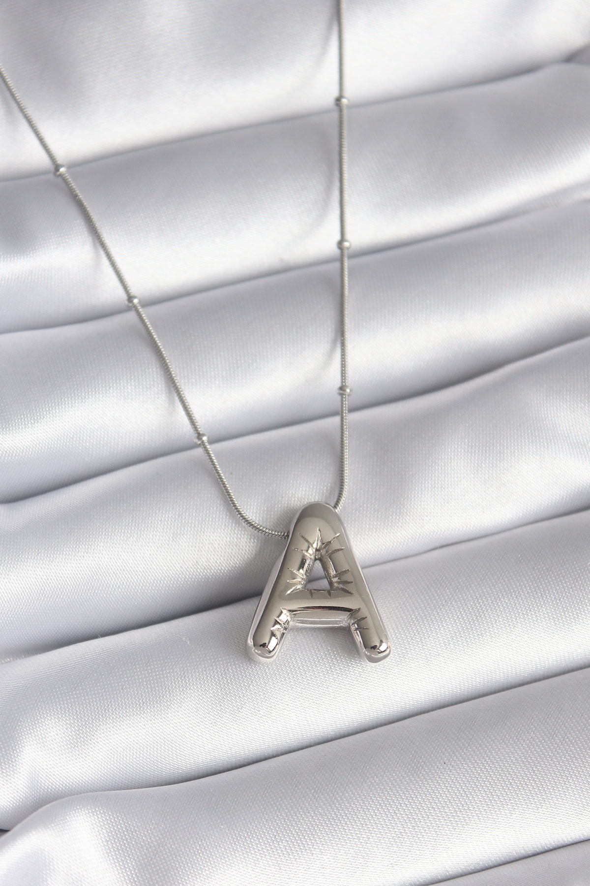 316L Çelik Gümüş Renk Bubble”A”Harf Model Kadın Kolye BKO8308
