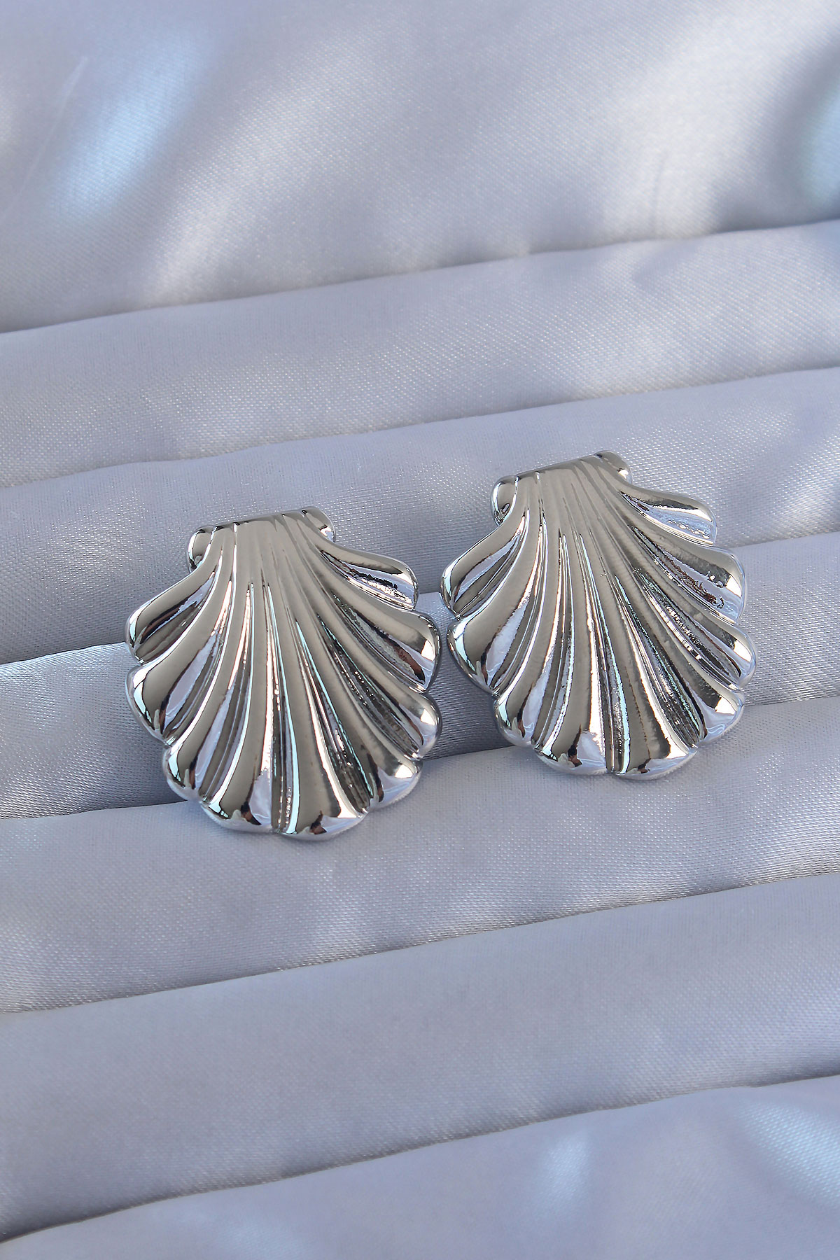 316L Çelik Gümüş Renk İstiridye Model Küpe BKP9105
