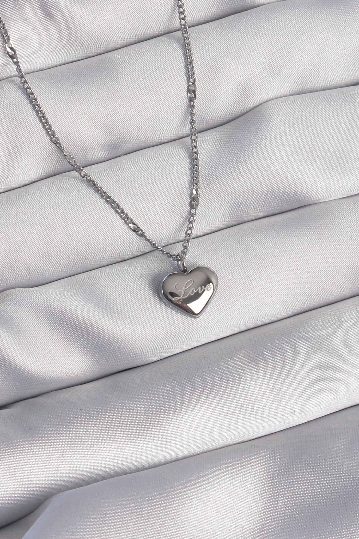 316L Çelik Gümüş Renk Kalp Model Love Kolye BKO8932