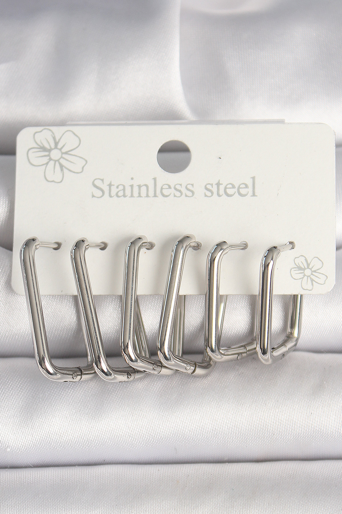 316L Çelik Gümüş Renk Kare Model Kadın Küpe Seti BKP10353