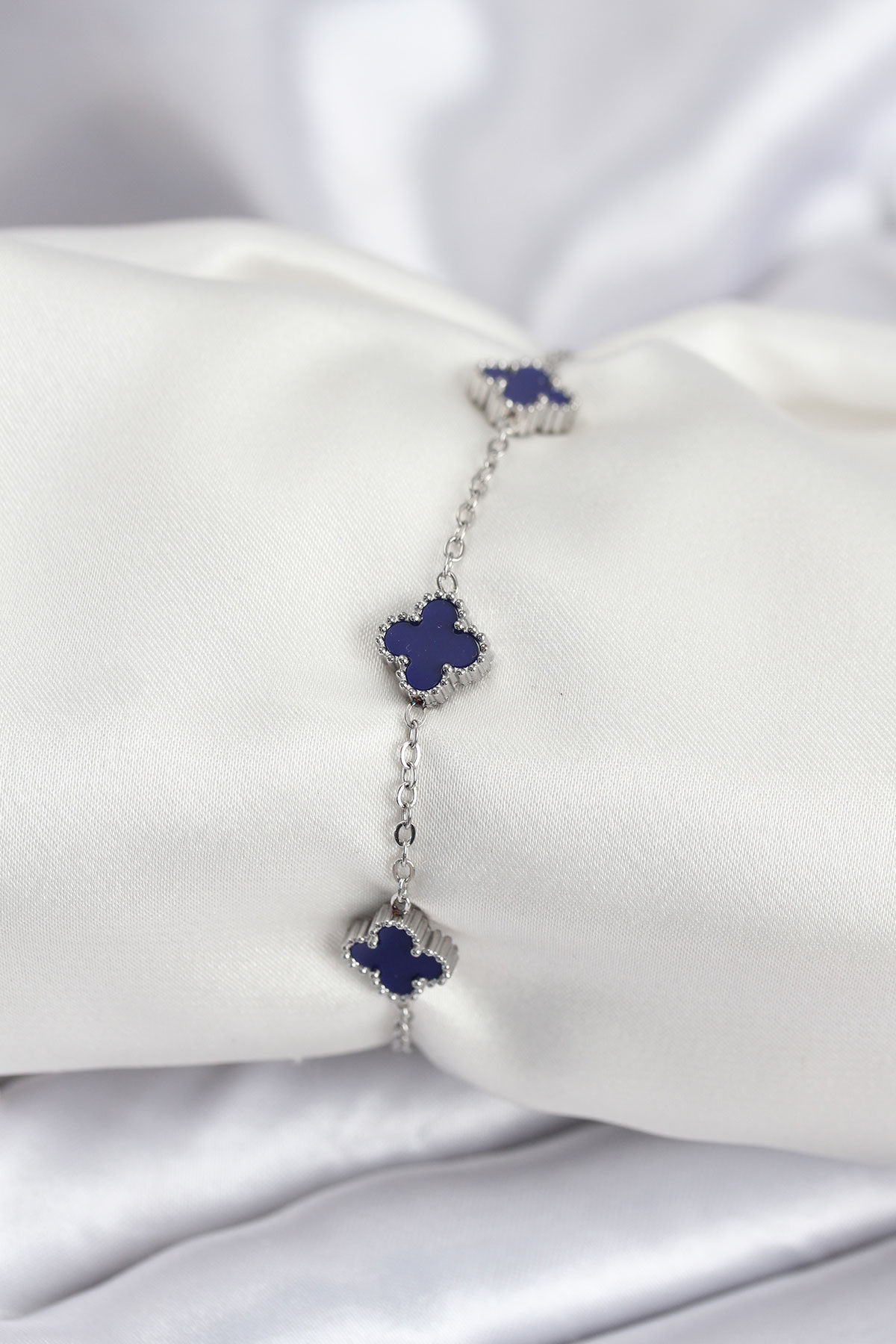 316L Çelik Gümüş Renk Lacivert Baby Boy Yonca Kadın Bileklik BB7952