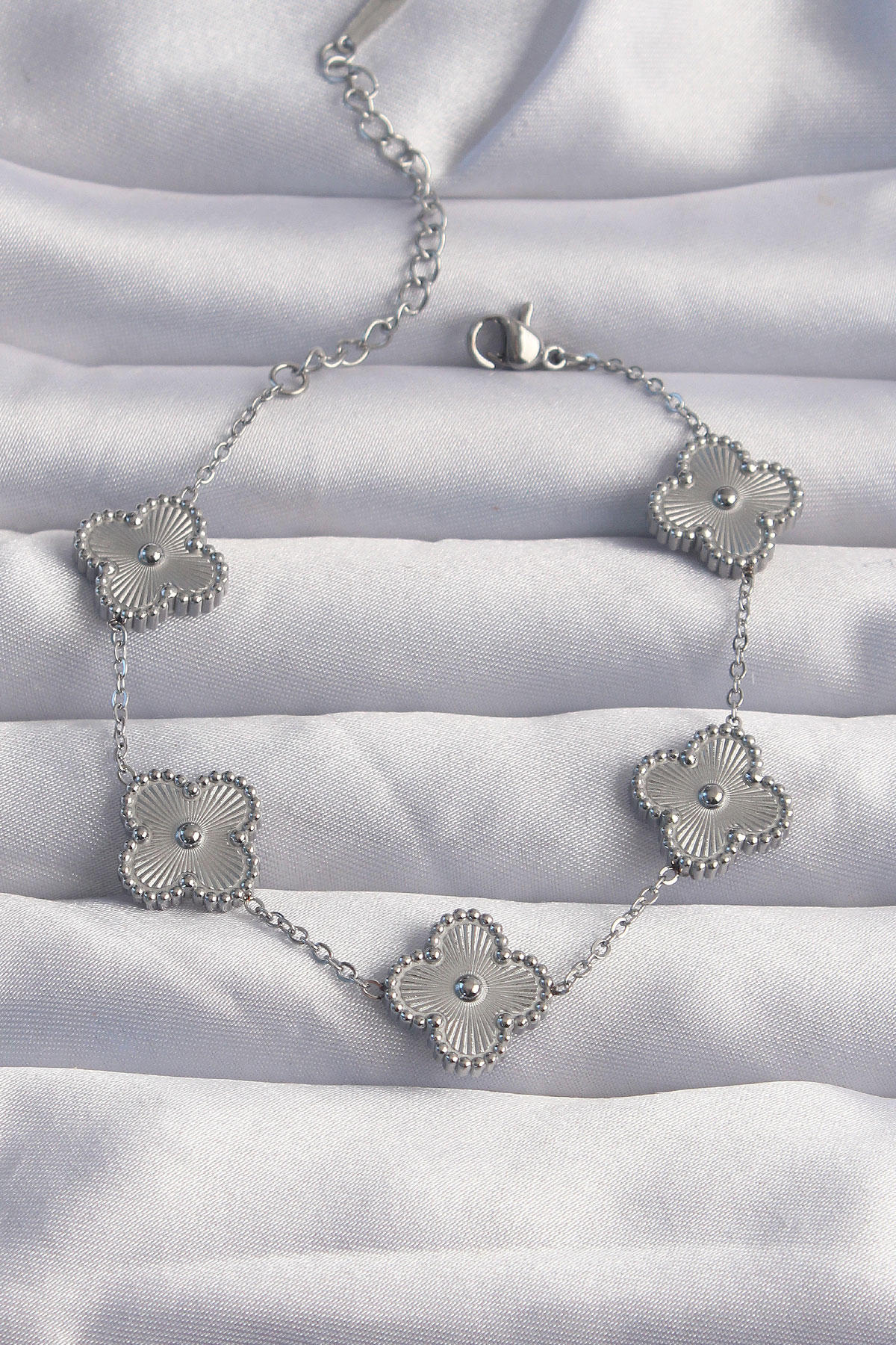 316L Çelik Gümüş Renk Motifli Yonca Bileklik BB6269