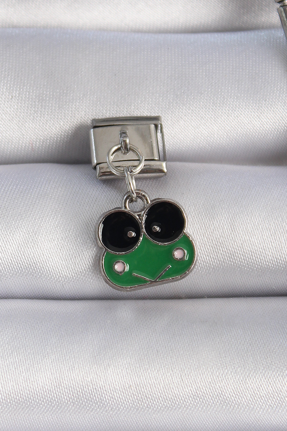 316L Çelik Gümüş Renk Sallantılı Yeşil Kurbağa Figür Nomination Charm BC1071