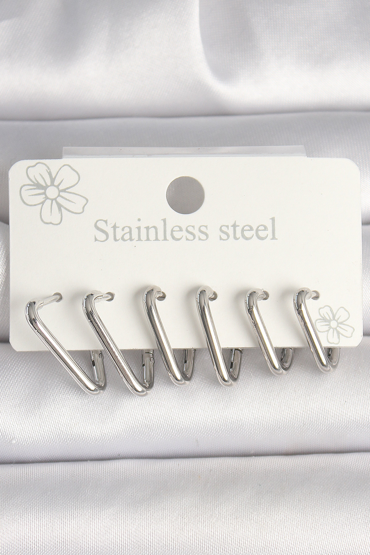 316L Çelik Gümüş Renk Üçgen Model Kadın Küpe Seti BKP10349