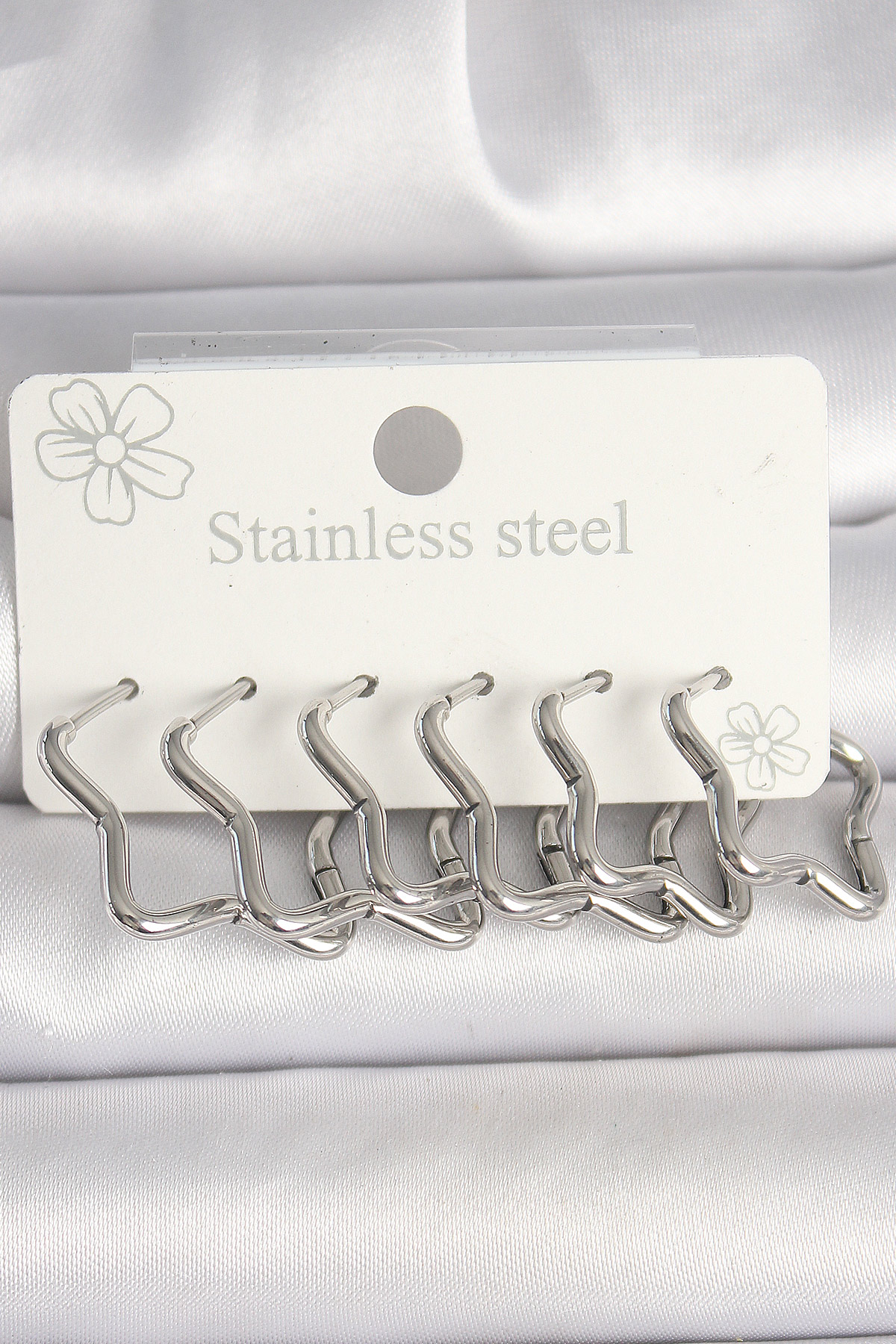 316L Çelik Gümüş Renk Yıldız Model Kadın Küpe Seti BKP10351