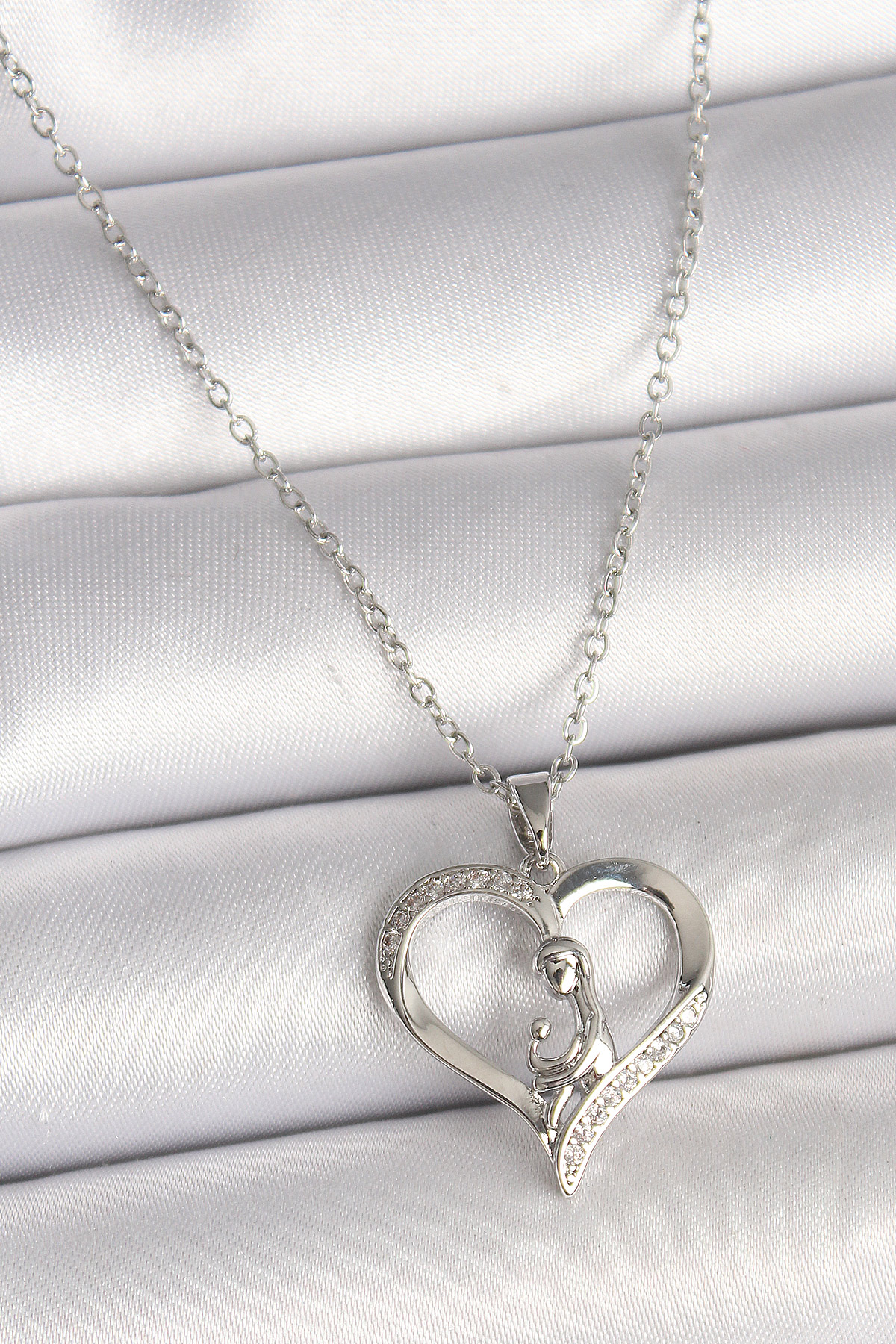 316L Çelik Gümüş Renk Zincir Zirkon Taş Detaylı Kalp Model Kadın Kolye BKO9854