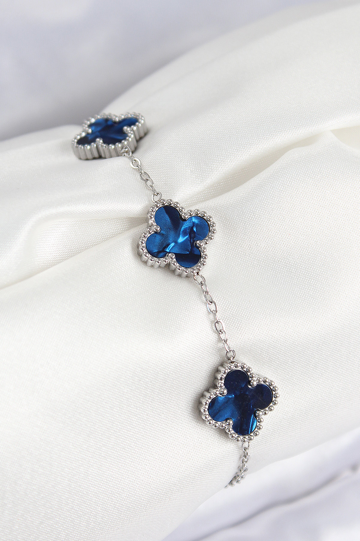 316L Çelik Sedefli Lacivert Gümüş Renk Yonca Kadın Bileklik BB7671