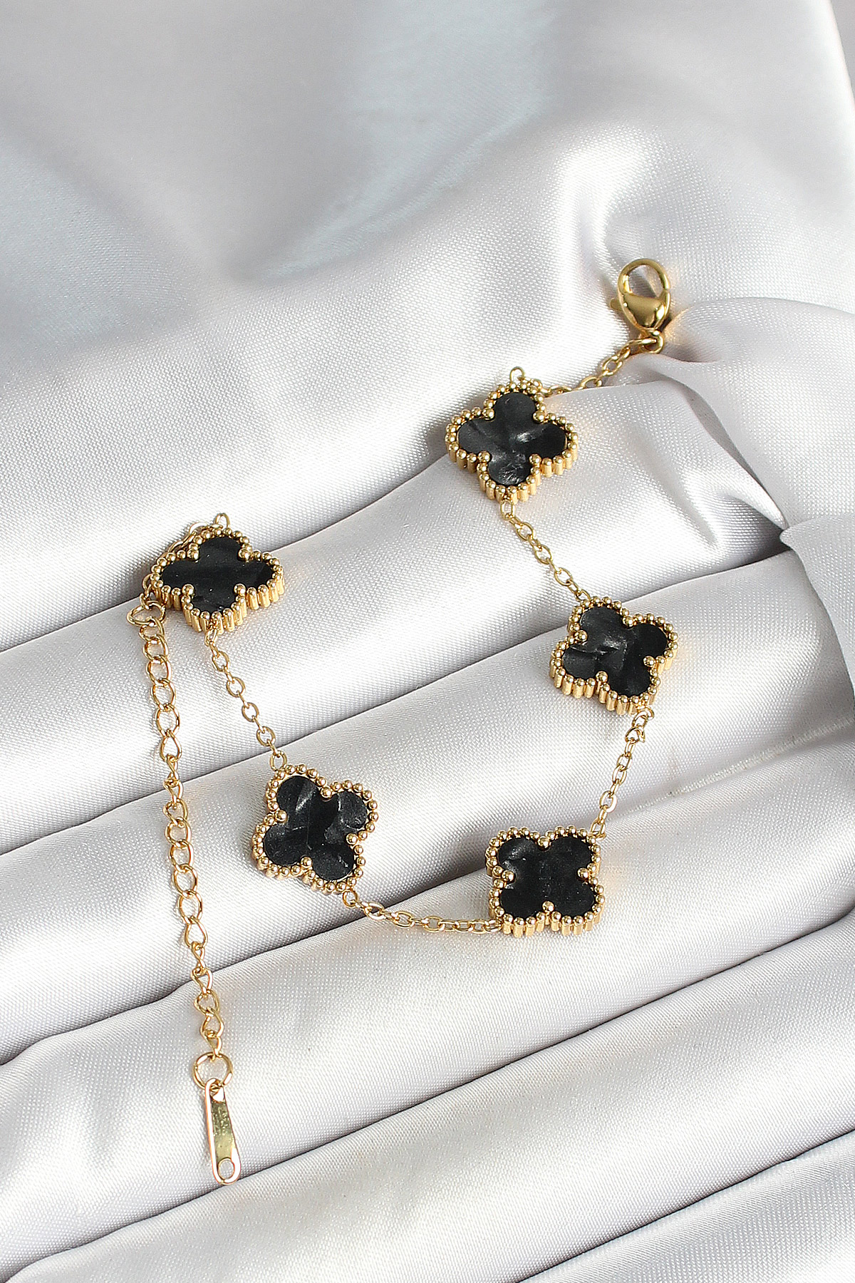316L Çelik Sedefli Siyah Gold Renk Yonca Kadın Bileklik BB6969