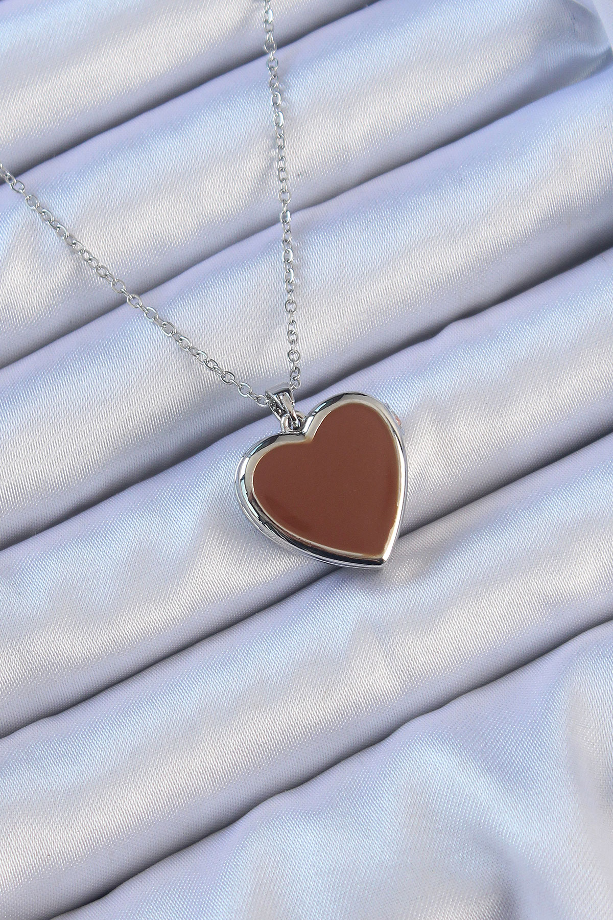 316L Çelik Zincir Gümüş Renk Mineli İçi Açılan Kalp Kolye BKO9098