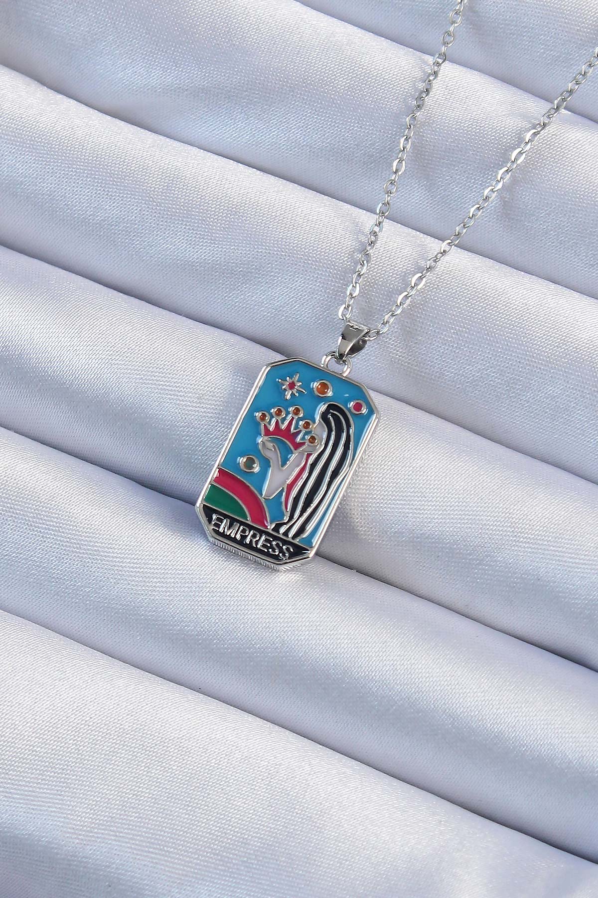316L Çelik Zincir Gümüş Renk Taç ve Kız Figürlü Renkli Mineli Tarot Kolye BKO9230