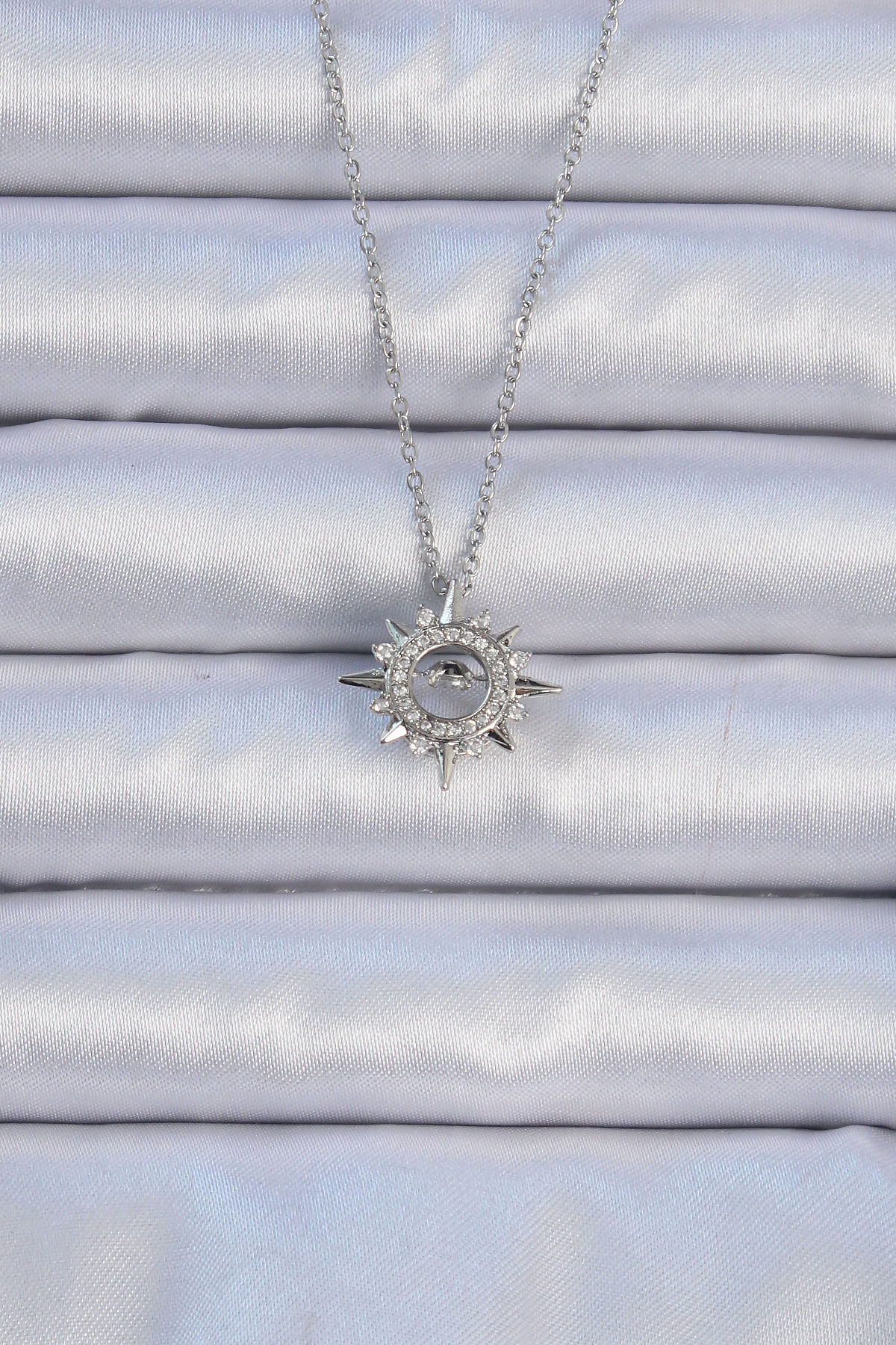 316L Çelik Zincir Gümüş Renk Zirkon Taşlı Parlayan Yıldız Kolye BKO9084