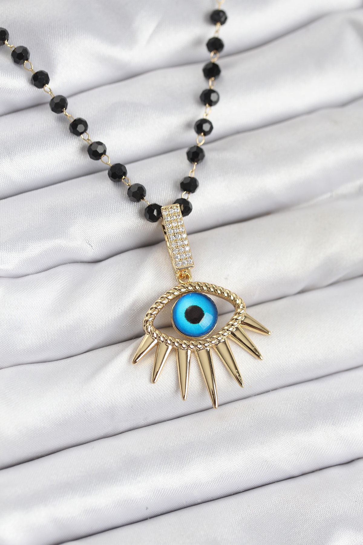 316L Çelik Zincir Kristal Boncuklu Göz Model Kadın Kolye BKO10564
