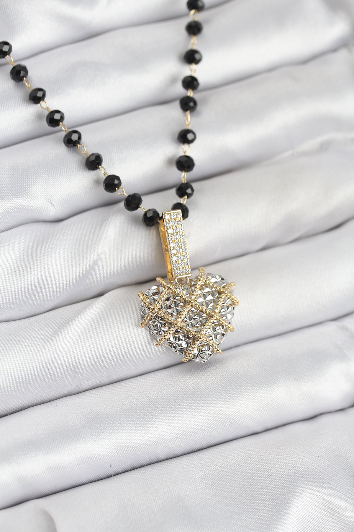 316L Çelik Zincir Kristal Boncuklu Kalpli Kadın Kolye BKO10562