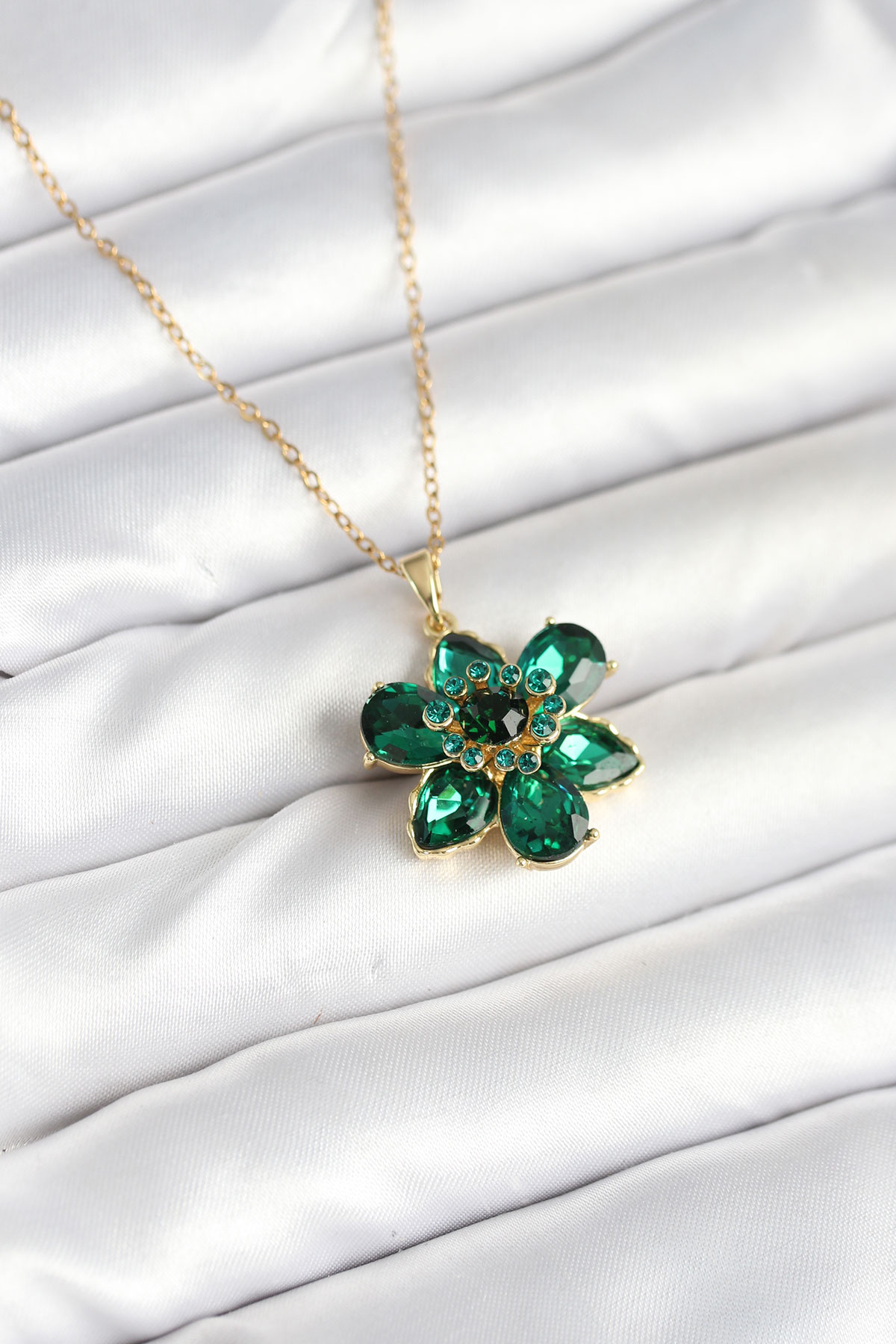 316L Çelik Zincirli Yeşil Çiçek Model Kadın Kolye BKO10596