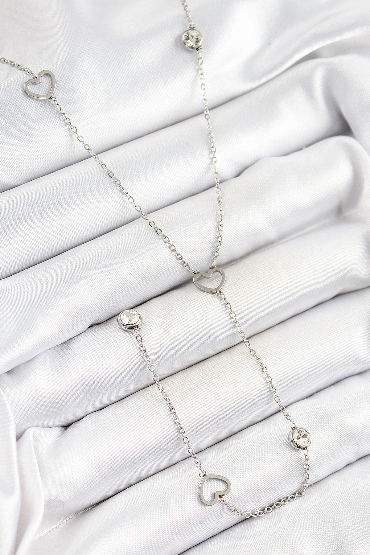 316L Çelik Zirkon Taşlı Kalp Figürlü Y Model Gümüş Renk Kadın Kolye BKO10334