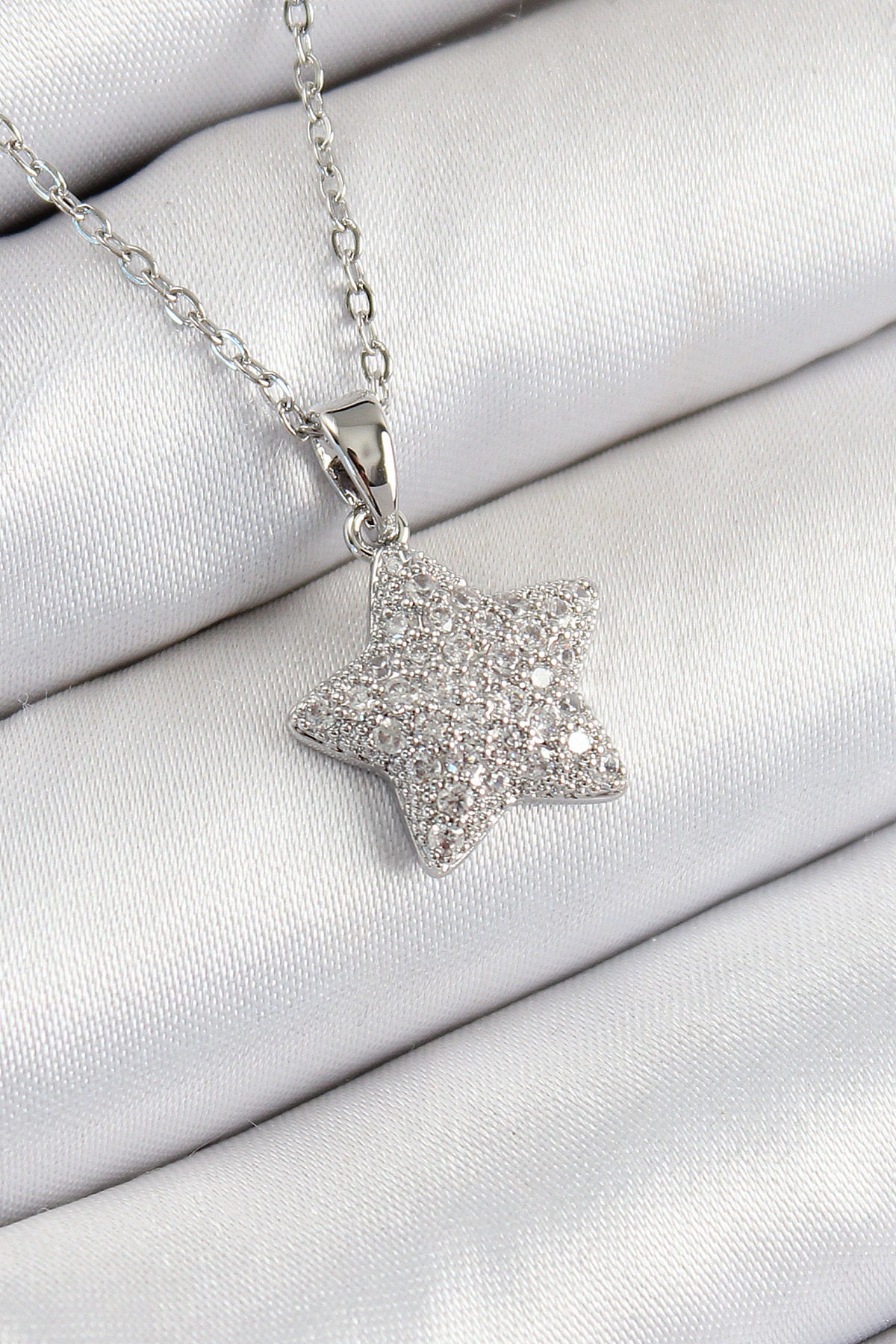 316L Çelik Zirkon Taşlı Yıldız Model Gümüş Renk Kadın Kolye BKO10352