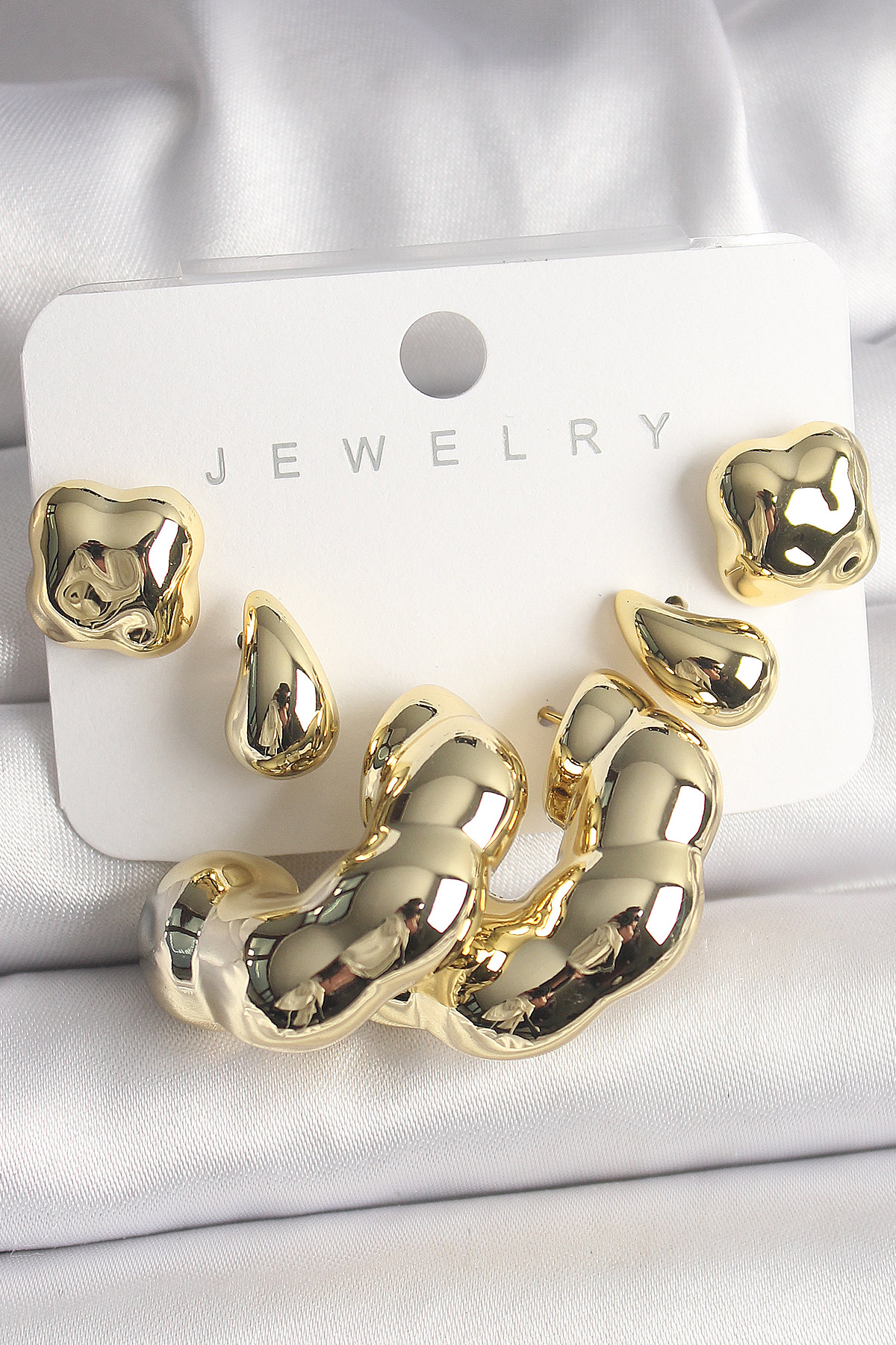 Gold Renk Yonca Damla Halka Model CCB Plastik Kadın Küpe Seti BKP10028