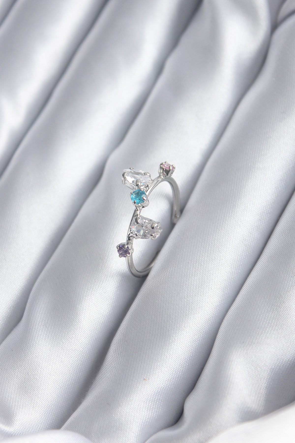 Gümüş Renk Renkli Zirkon Taşlı Kadın Yüzük BYK2843