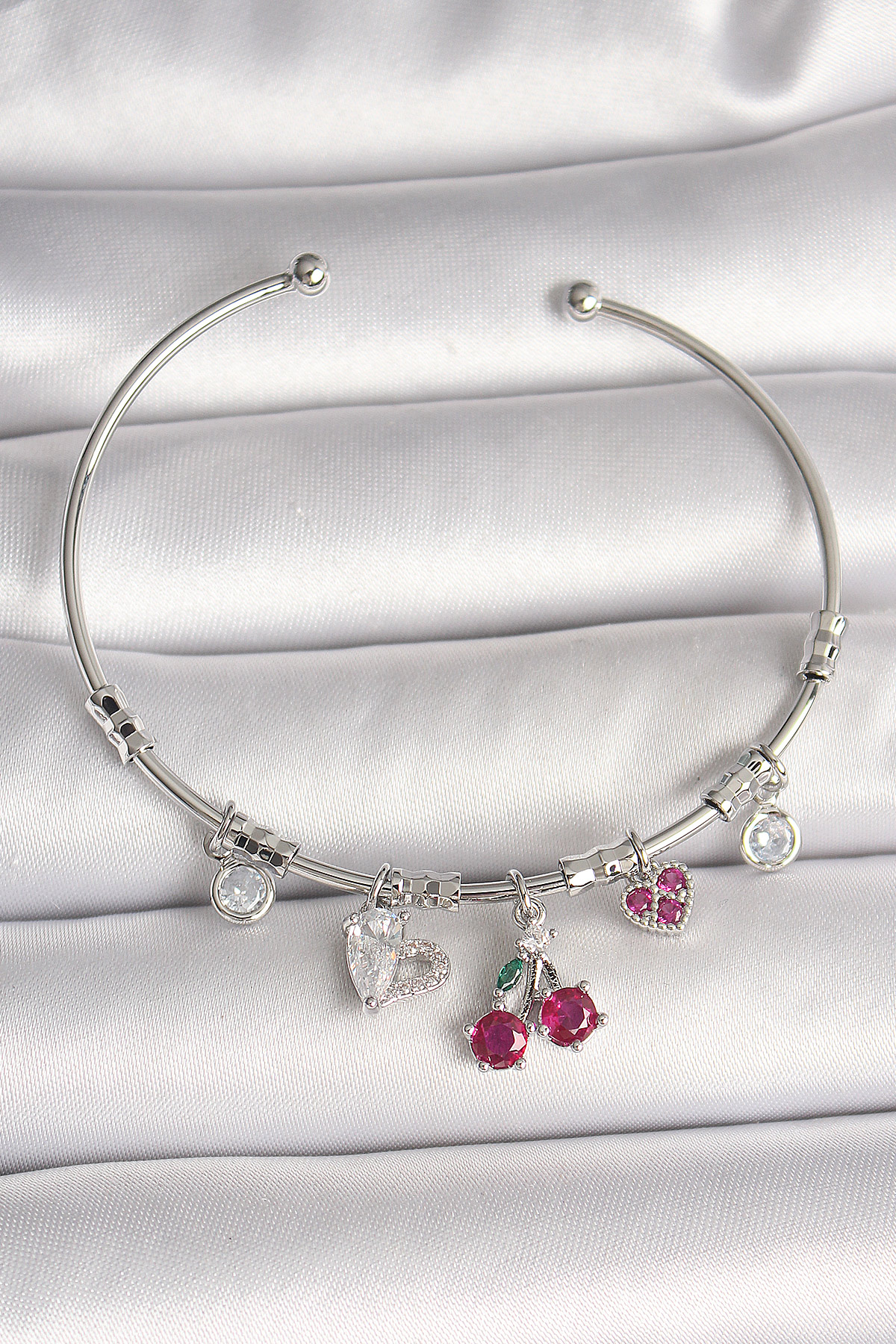 Sallantı Kiraz Figür Kalp Detay Charm Kadın Bileklik BB6901