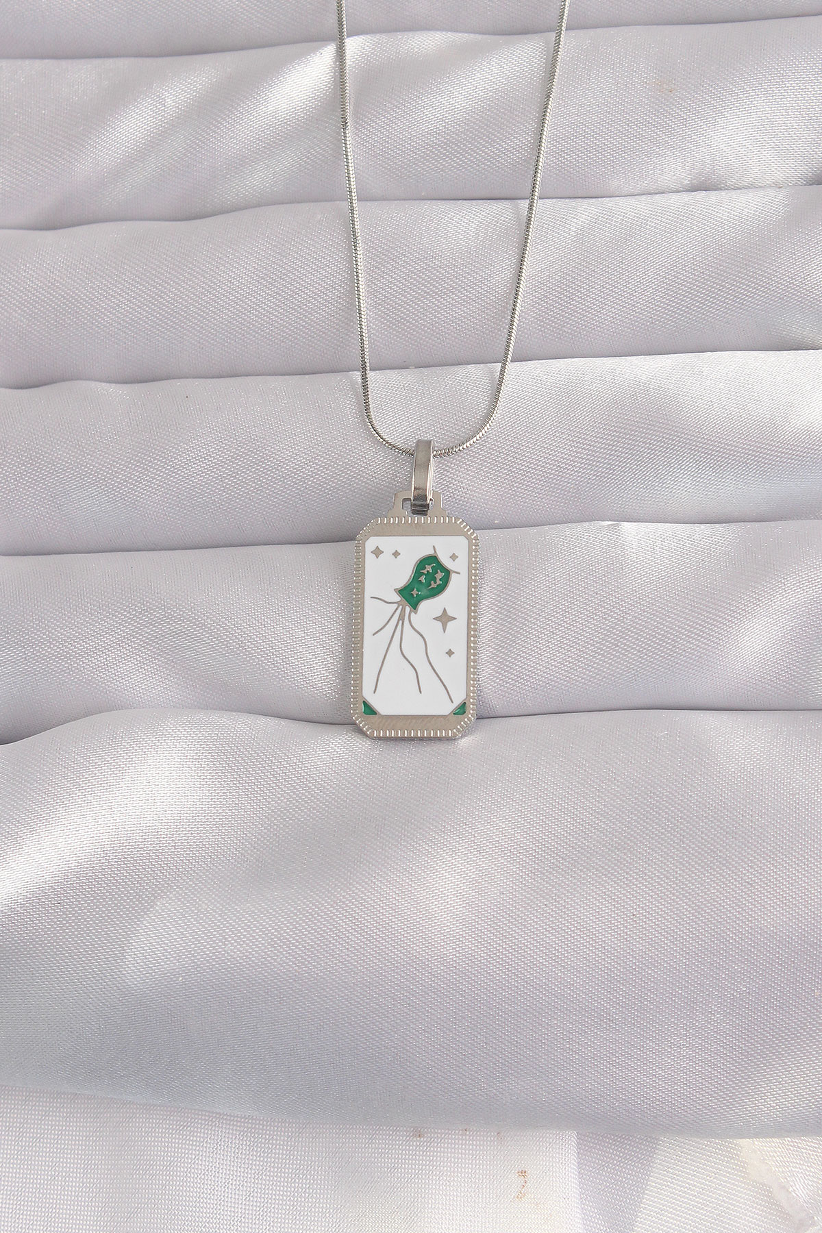 316L Çelik Gümüş Renk Beyaz Mineli Tarot Kolye BKO9048
