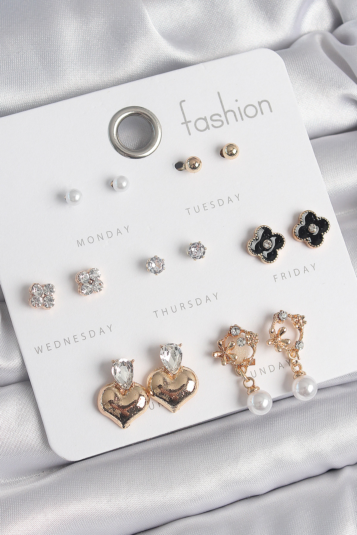 Figür Siyah Yonca Detay 7 Çift Kadın Küpe Seti BKP10541