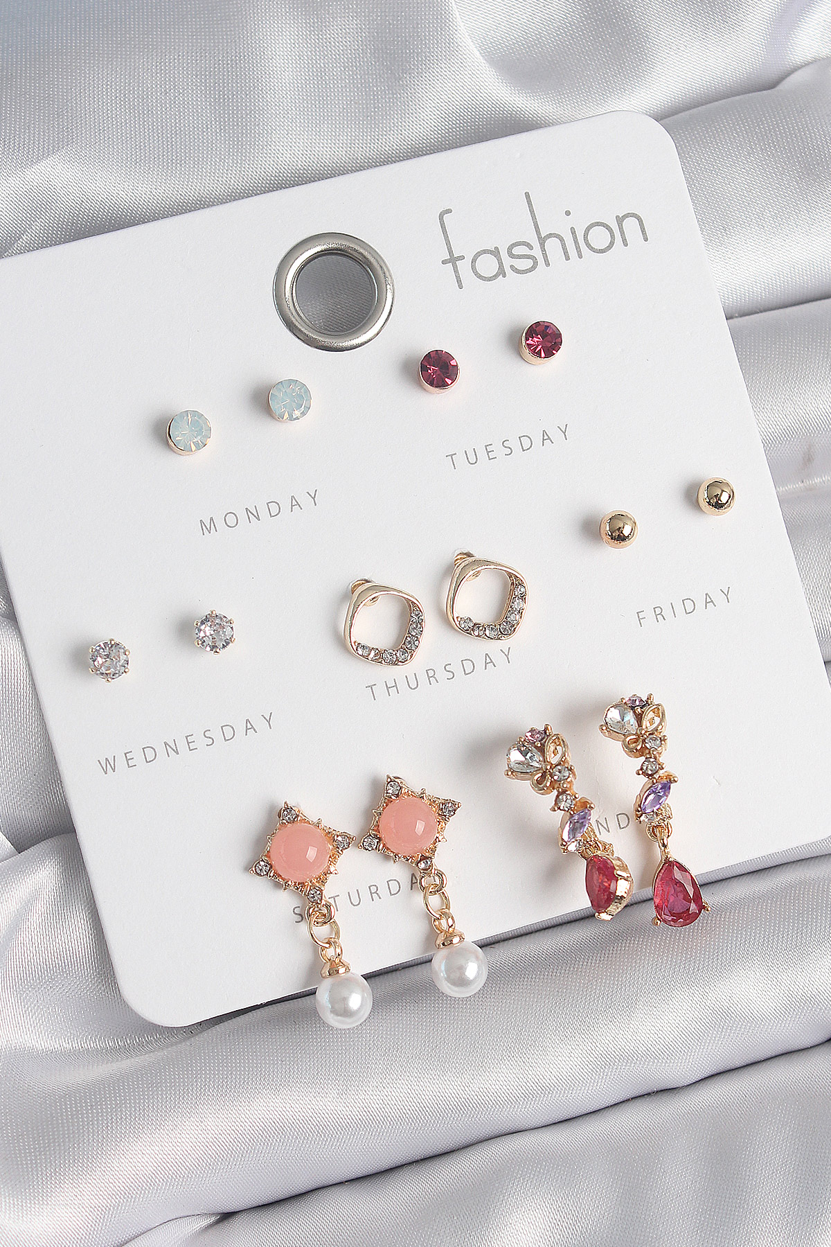 Zirkon Taşlı Sallantı İnci Detay 7 Çift Kadın Küpe BKP10534