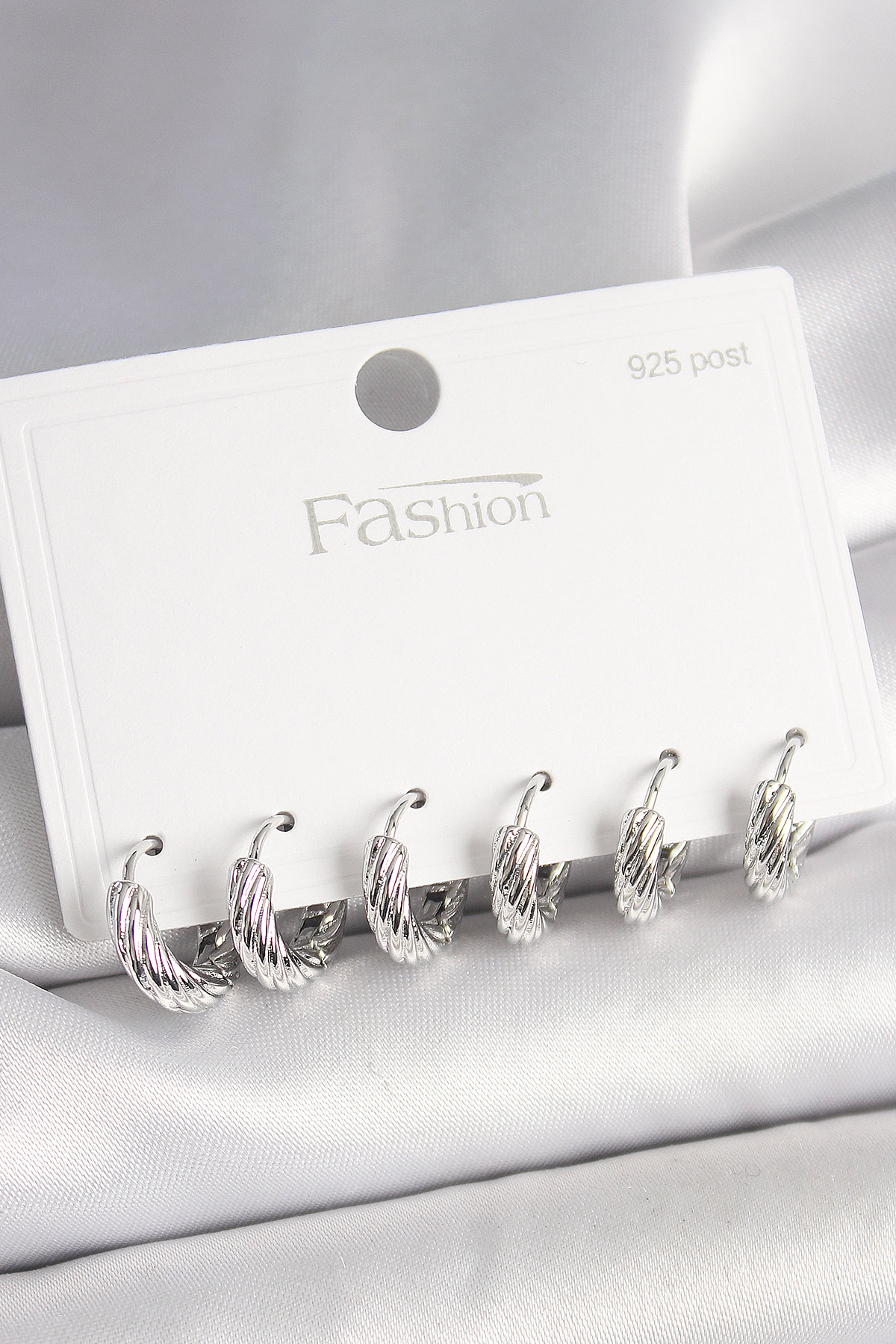 228,15₺Gümüş Renk Sarmal Halka Model Kadın Küpe Seti BKP10416
