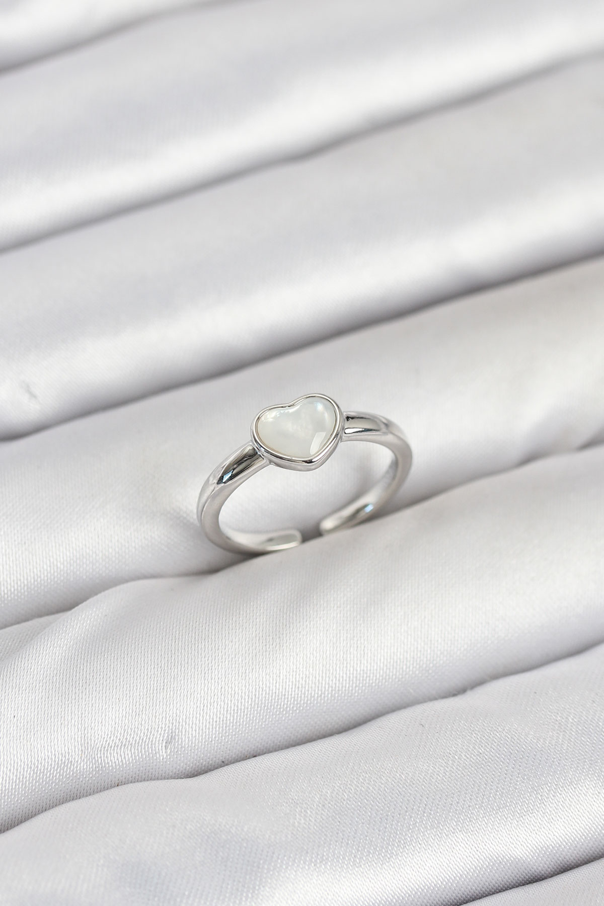 Pirinç Gümüş Renk Kalpli Kadın Yüzük BYK3881