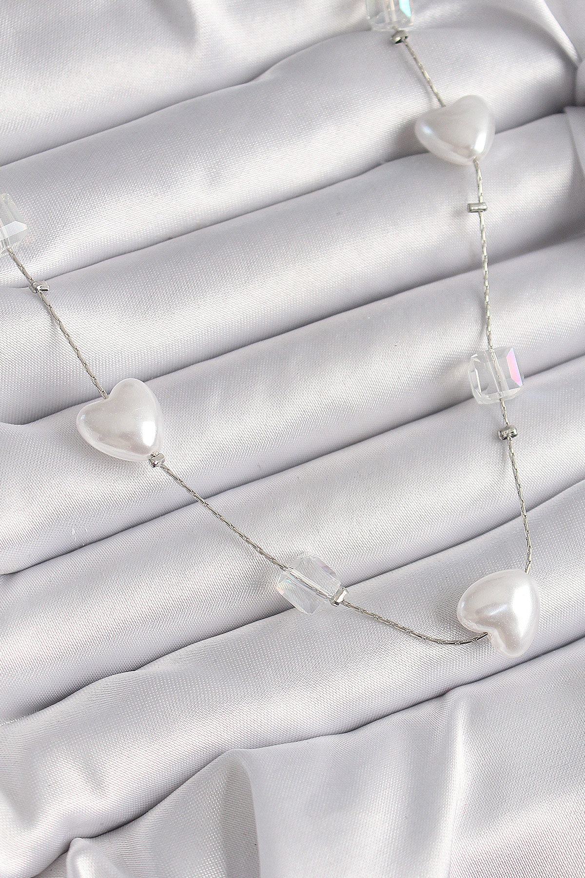 Pirinç Gümüş Renk Beyaz İnci Kalp Model Kadın Kolye BKO9624