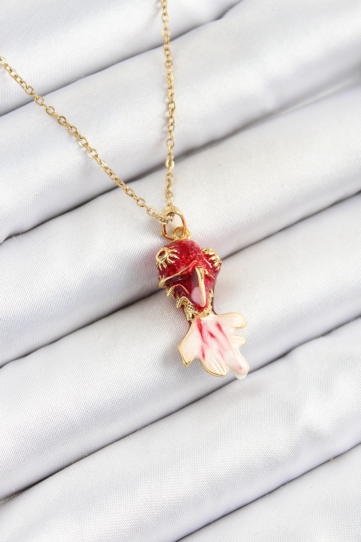 Zincir Kırmızı Balık Model Gold Renk Kadın Kolye BKO10325