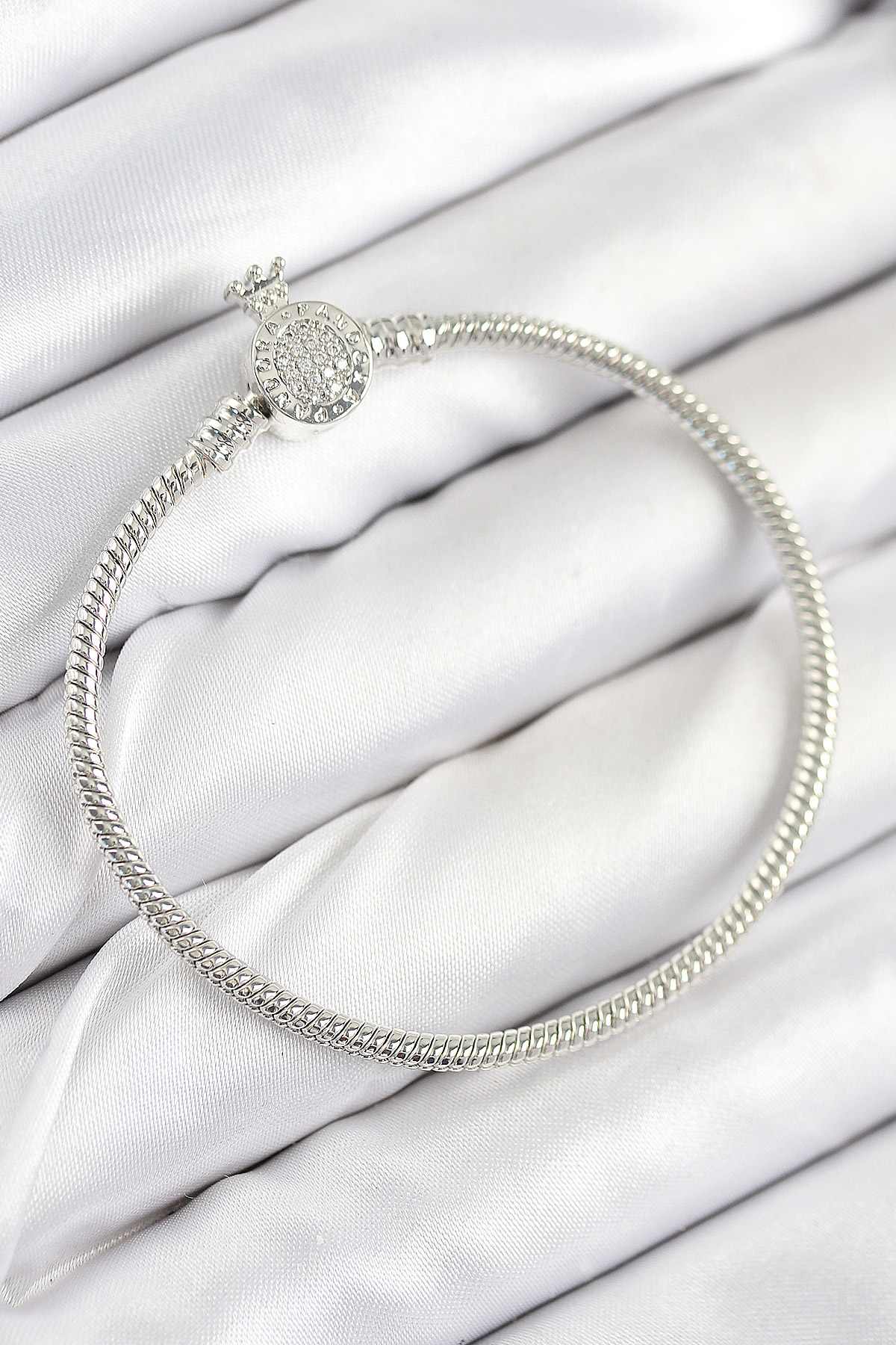 Zirkon Taşlı Taç Model Gümüş Renk Kadın Bileklik BB7802