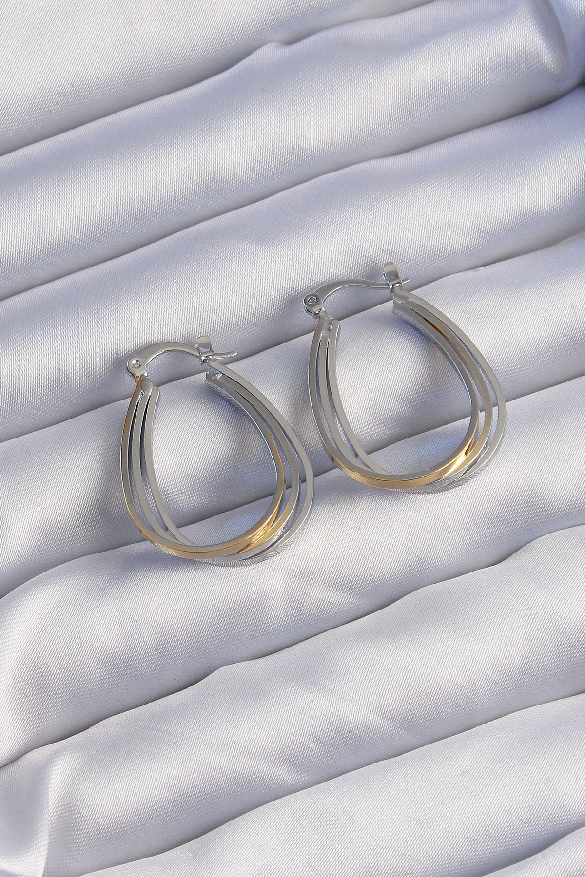 Pirinç Gold Gümüş Renkli Oval Çoklu Görünümlü Küpe BKP9223