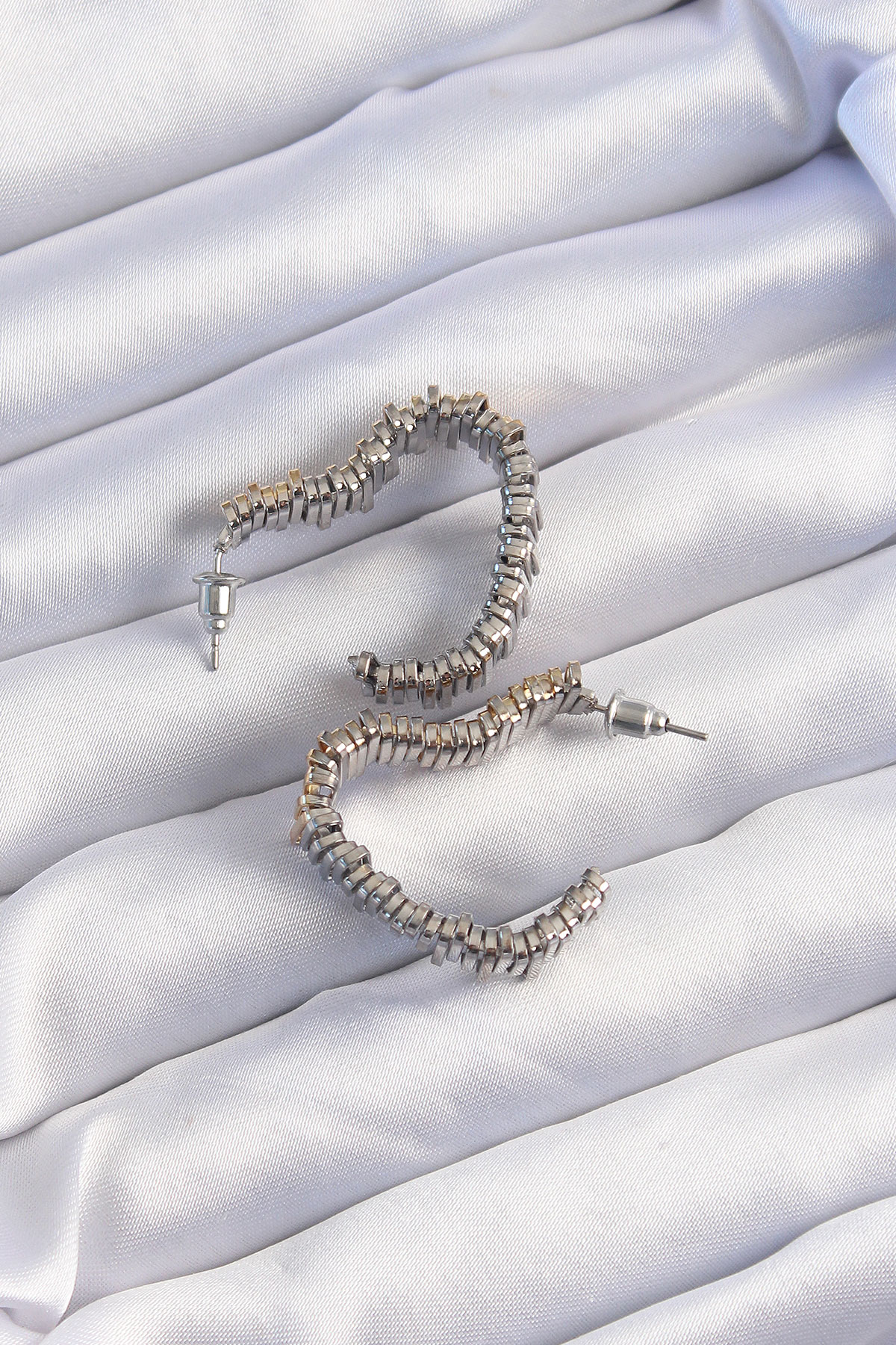 Pirinç Gold Gümüş Renkli Tırtıklı Kalp Küpe BKP9227