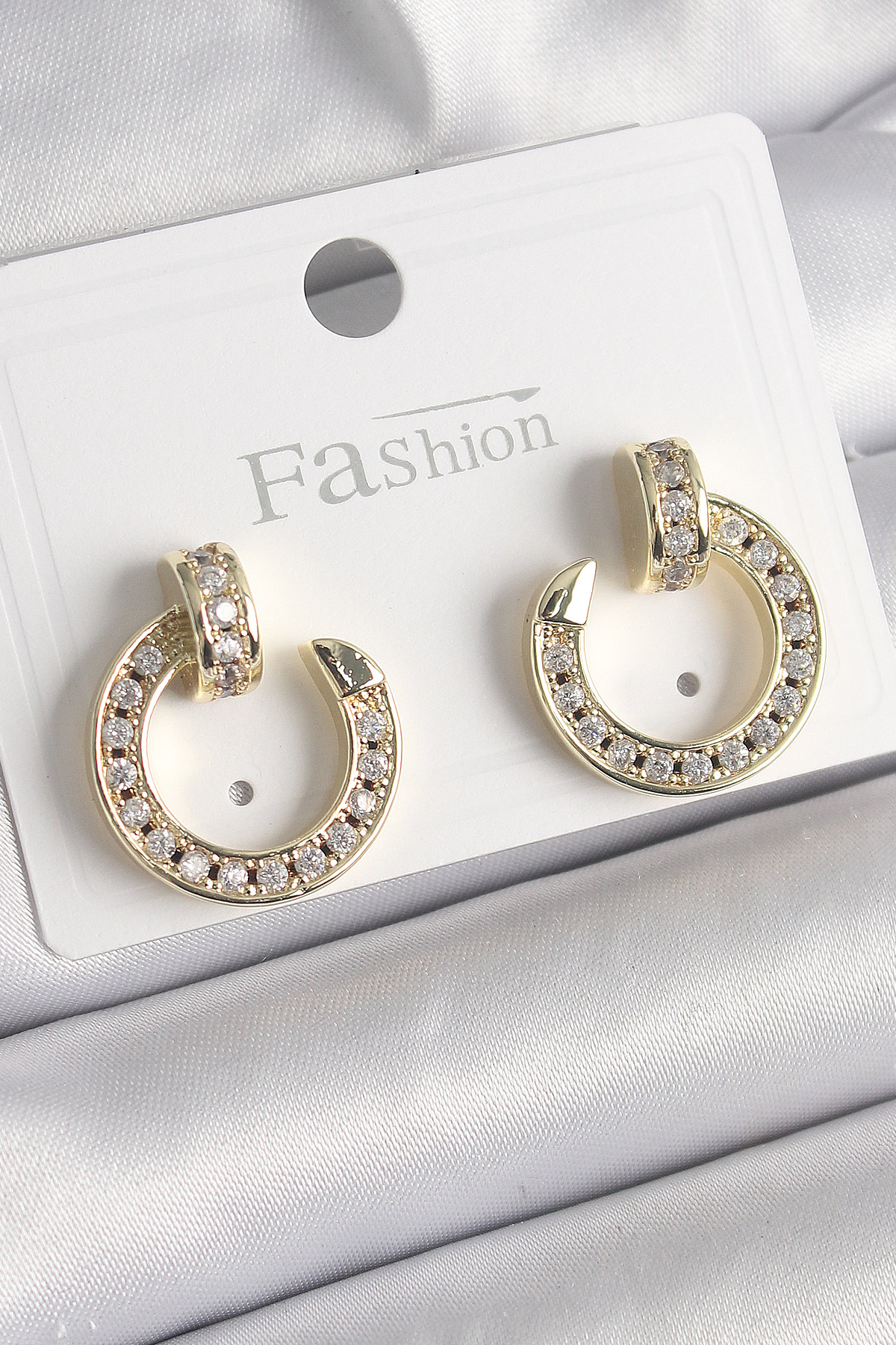 Pirinç Gold Renk Zirkon Taşlı Çivi Halka Model Kadın Küpe BKP9846