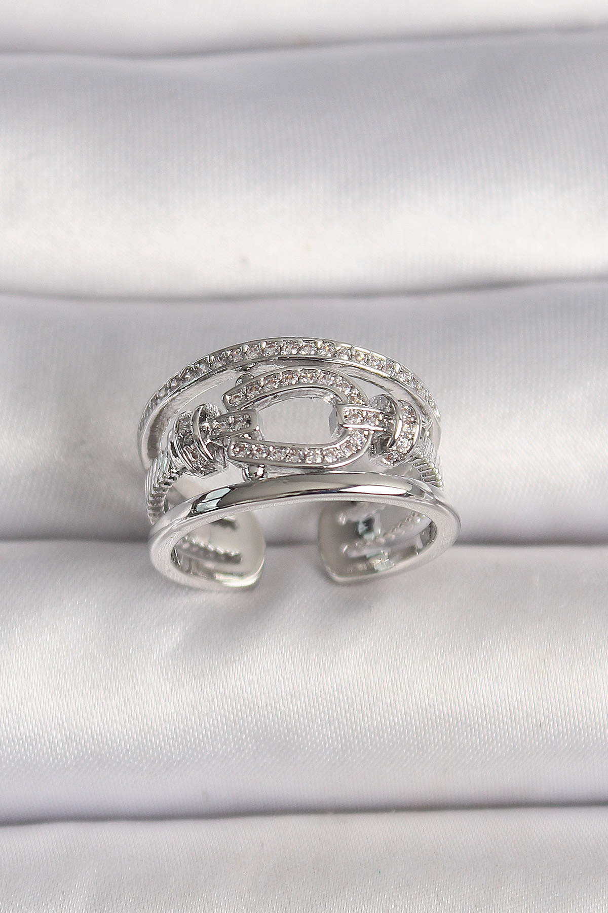 Pirinç Gümüş Renk Ayarlanabilir Zirkon Taşlı Gemici Düğüm Model Kadın Yüzük BYK3584