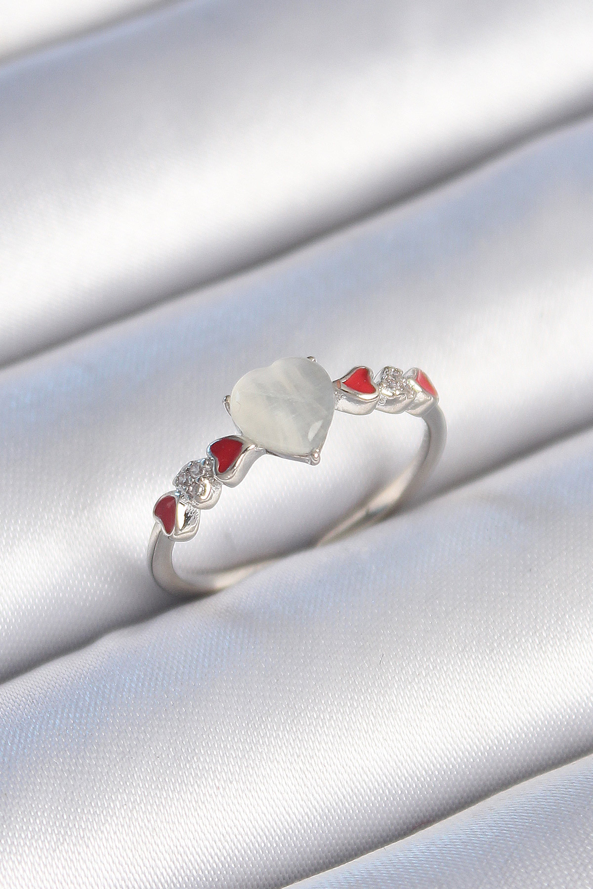 Pirinç Gümüş Renk Beyaz Mineli Kalp Model Zirkon Taş Detaylı Kadın Yüzük BYK3459