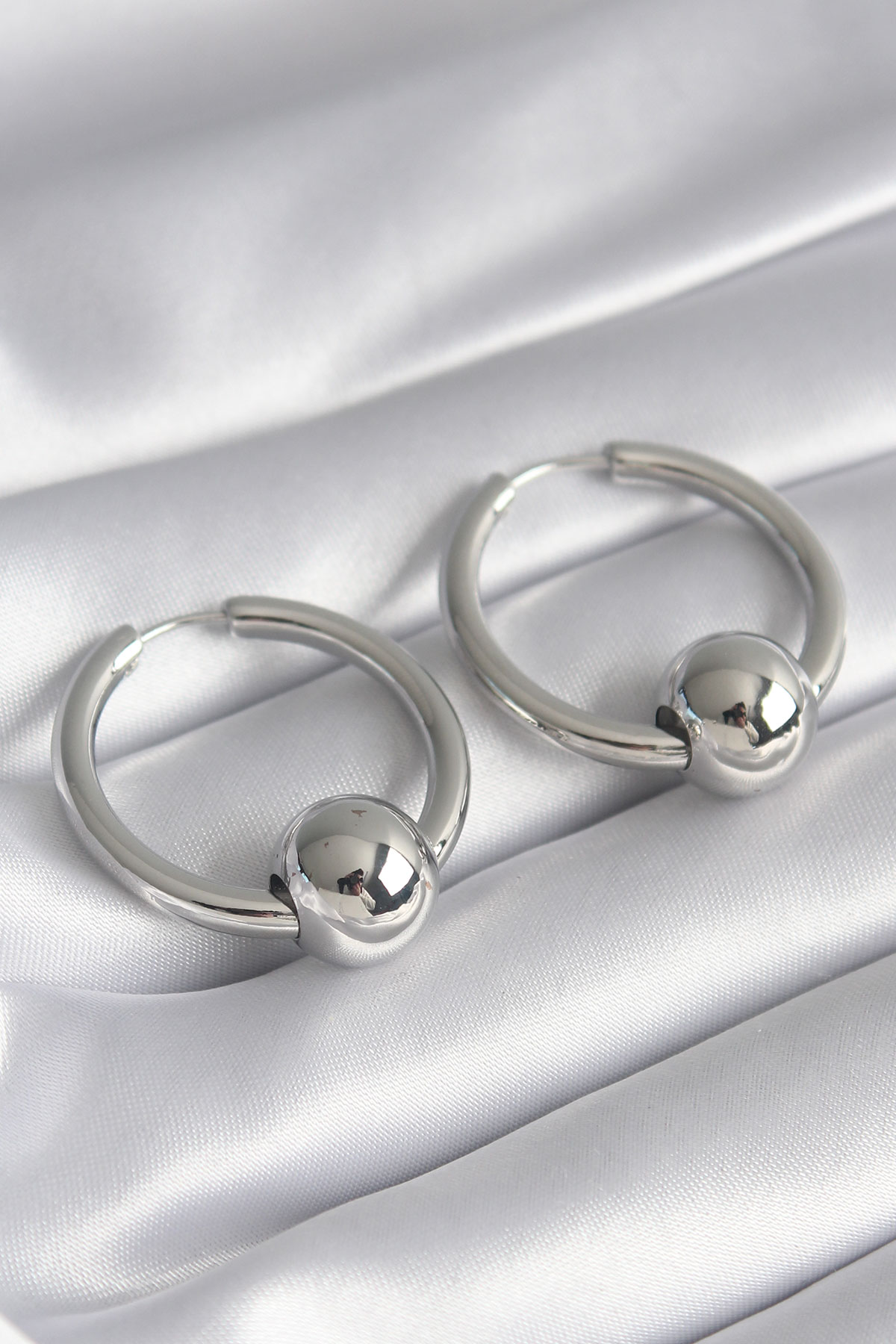 Pirinç Gümüş Renk Halka Top Model Kadın Küpe BKP8500