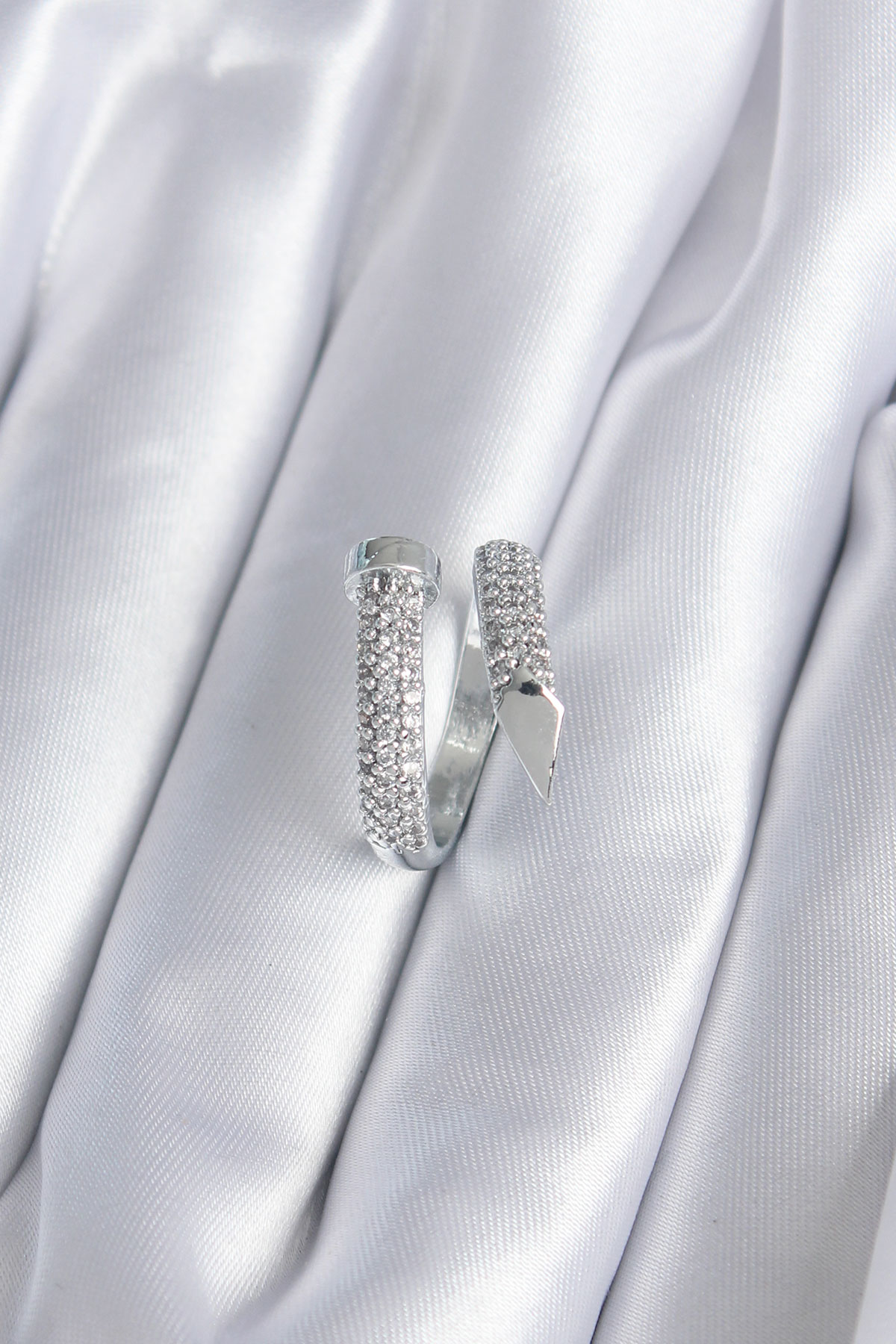 Pirinç Gümüş Renk Zirkon Taşlı Çivi Model Kadın Yüzük BYK2877