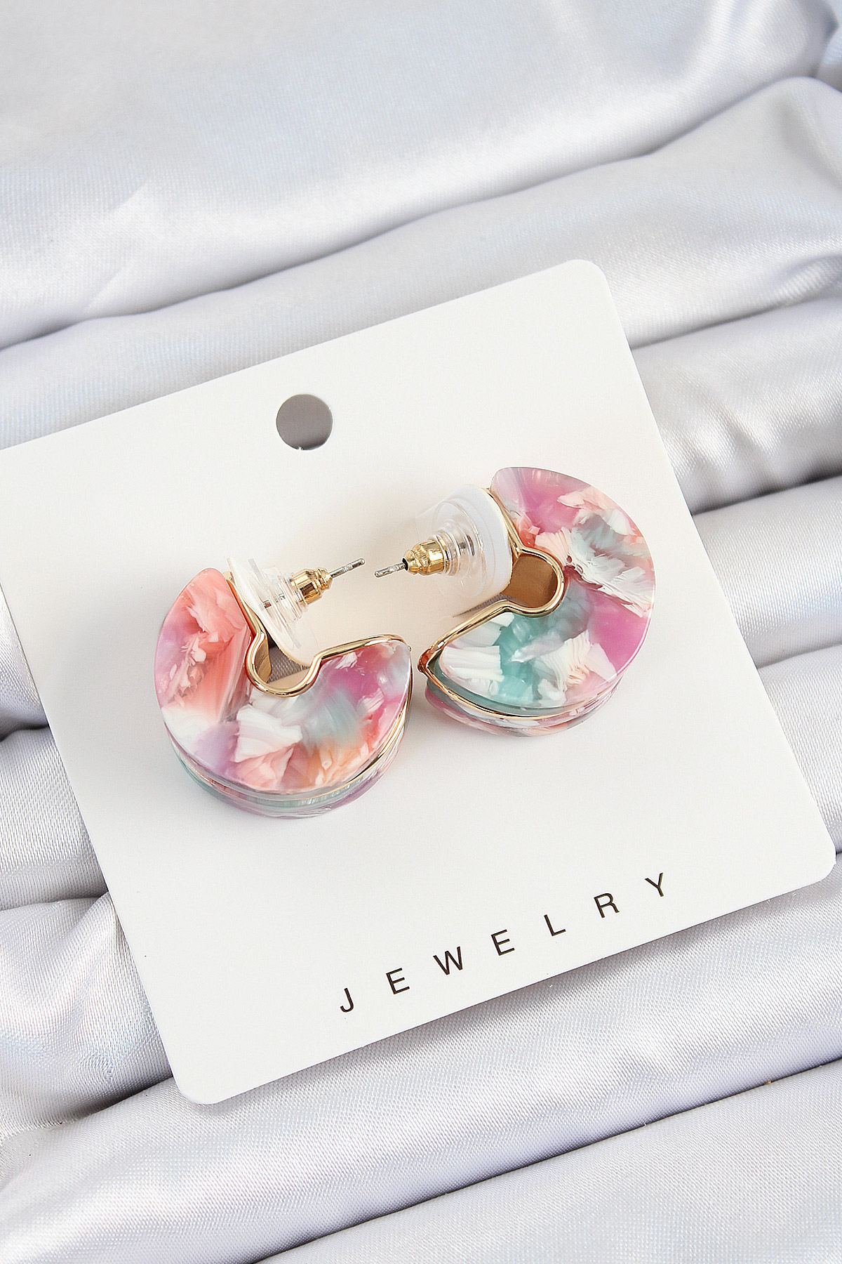 Pirinç Mermer Desenli Vintage Yarım Halka Model Gold Renk Kadın Küpe BKP10763