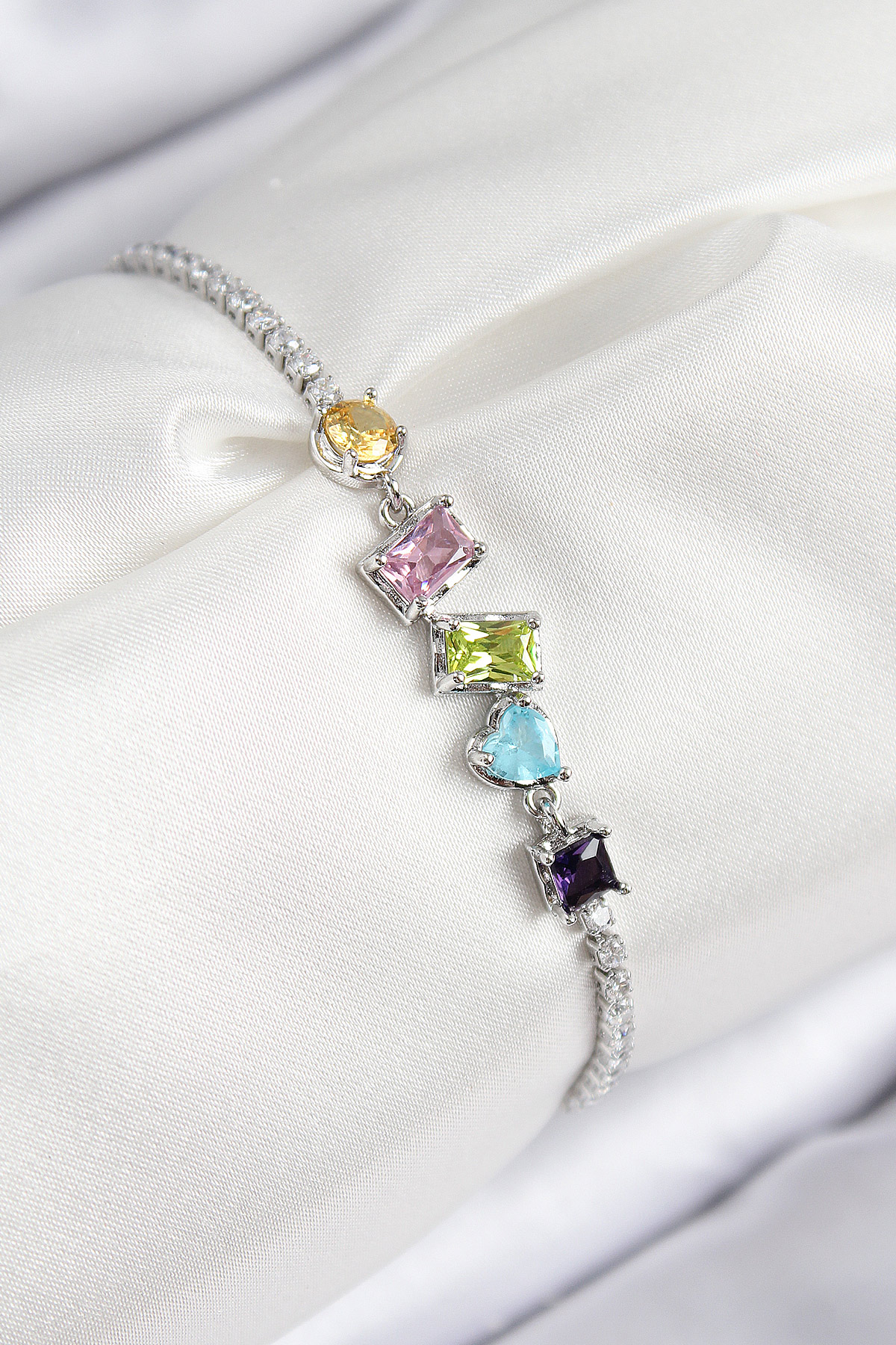 Pirinç Renkli Zirkon Taşlı Geometrik Model Gümüş Renk Kadın Bileklik BB7688