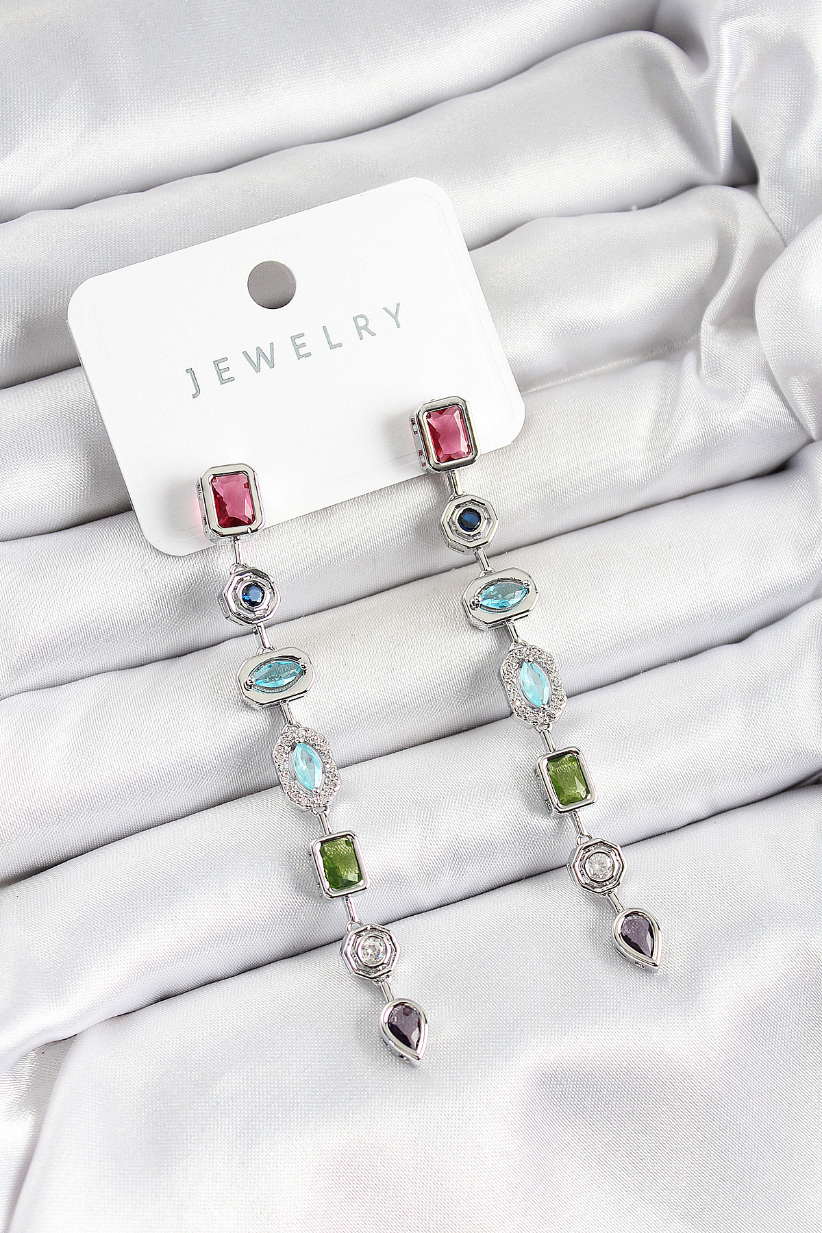 Pirinç Renkli Zirkon Taşlı Sallantılı Model Gümüş Renk Kadın Küpe BKP10743